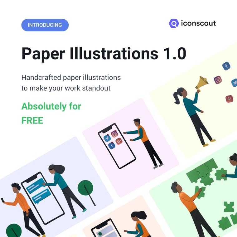 Make your work standout with Paper Illustrations. Incredible set of paper illustrations absolutely free for both personal and commercial use. Set of 20 ready to use illustrations. Carefully crafted illustrations to use in different categories.