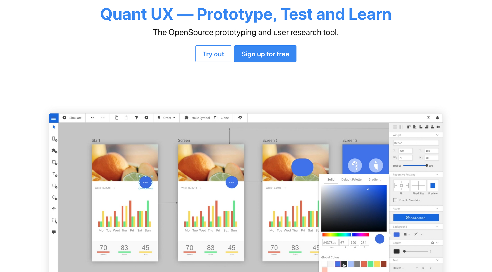 Last week I wrote about Penpot, an open-source full-fledged user interface design tool. And this week, I want to present you with another open-source tool, but this time for prototyping and user research. Quant UX lets you create prototypes and understand how your audience interacts with them. It is a free research, usability & UI prototyping/wireframing tool to quickly test your design and analyze interactive prototypes. Our visual analysis makes it easy for you to find and quickly fix pain points in your UI design. With Quant UX you can create prototypes literally in minutes, simply, without writing a single line of code. To bring your prototypes to life, Quant UX is offering an elements library with a wide range of ready-to-use UI elements for your prototype. On top of that, you can also collaborate with your team within Quant UX, simply send a link to your prototype and work together with others. When you are done with your prototypes, you surely want to test them with real users. Quant UX offers exactly that: Â All prototypes are fully functional. They behave like a real application. You can enter data, interact with UI elements and navigate between screens. After the test, the analysis phase starts: Once a test user uses your prototype, their interactions are recorded and analyzed. Quant UX wins all information and Key Performance Indicators (KPI) and prepares them graphically. Quant UX is an incredibly powerful tool, with a wide-range of features, and all of that is free and open-source. You hardly find such a great product for that specific use case.