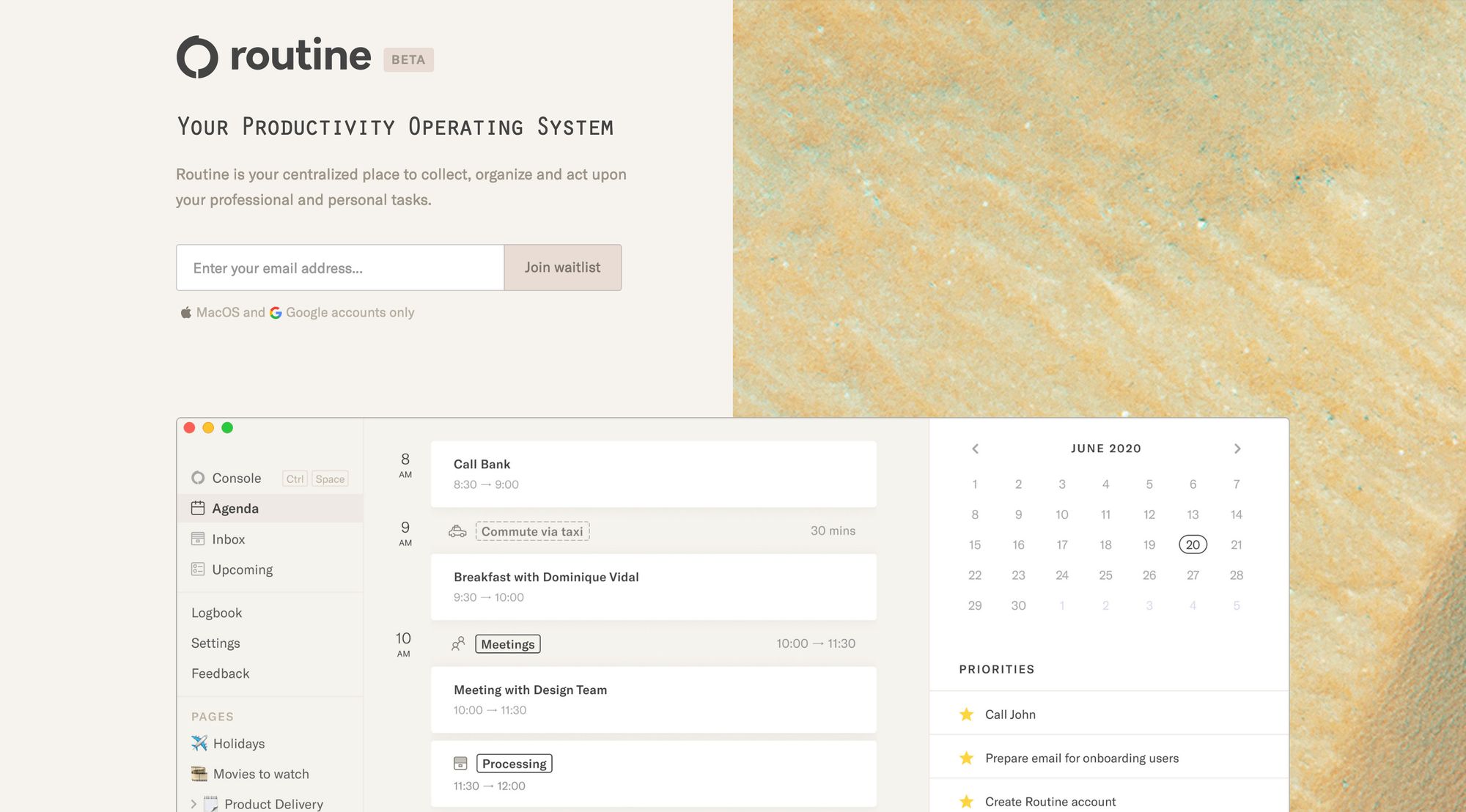 The productivity tool space is an ever-growing one, and it is always exciting to see tools with a new approach. Routine recently caught my eye, as it entitles itself as a productivity operating system, a centralized place to collect, organize and act upon your professional and personal tasks. There are loads of tools for calendars, email, tasks, notes, meetings, and so on, all of them compete for the userâs attention and rarely interconnect to make her life easier. Routine lets you define your, you guessed it right, routine. Structure your day, week or month, define your schedule by creating slots representing a type of work. Time-blocking is an incredibly useful productivity technique, and one of the most popular advocates of this technique is none other than Cal Newport, author of Deep Work. With Routine you can quickly turn anything into a task, no matter if it is a conversation on Slack, WhatsApp, Messenger etc, a mail from Gmail or a Web page, or else. All of that lands straight into Routine's Inbox, where you can come back to it process your inbox of inbound messages: emails, chats, and tasks alike. Besides that, Routine is a gorgeously designed tool and I can not wait to give it a try.