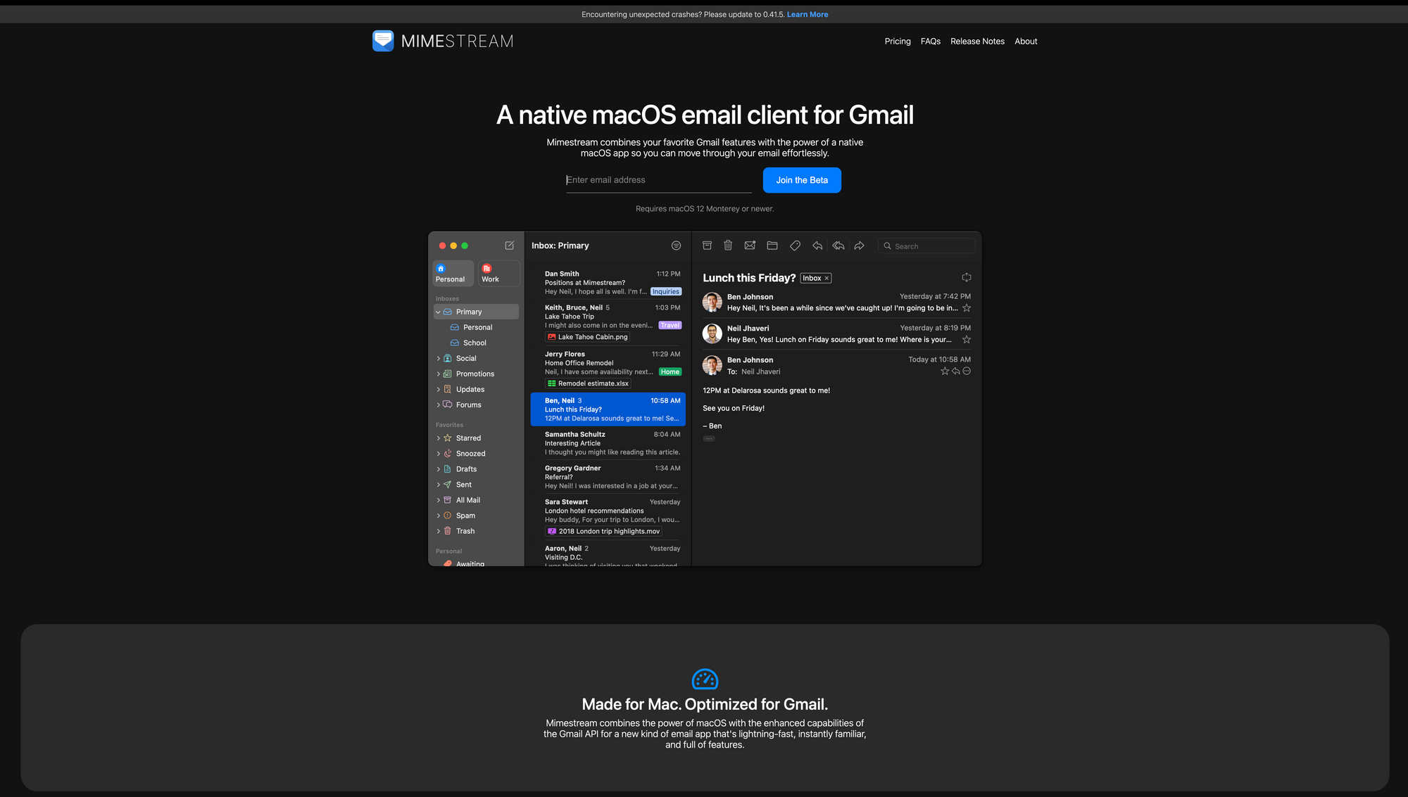 As already mentioned, Mimestream is currently in beta. During that beta period, it is free-to-use. Since the company behind Mimestream is dedicated to building high-quality software without compromising your privacy, it will never monetize your data for advertising or market research purposes. In order to build a sustainable business, Mimestream will cost money once it comes out of beta status. it is available exclusive for macOS. To get access and give it a try, simply sign up on its website and join the beta.