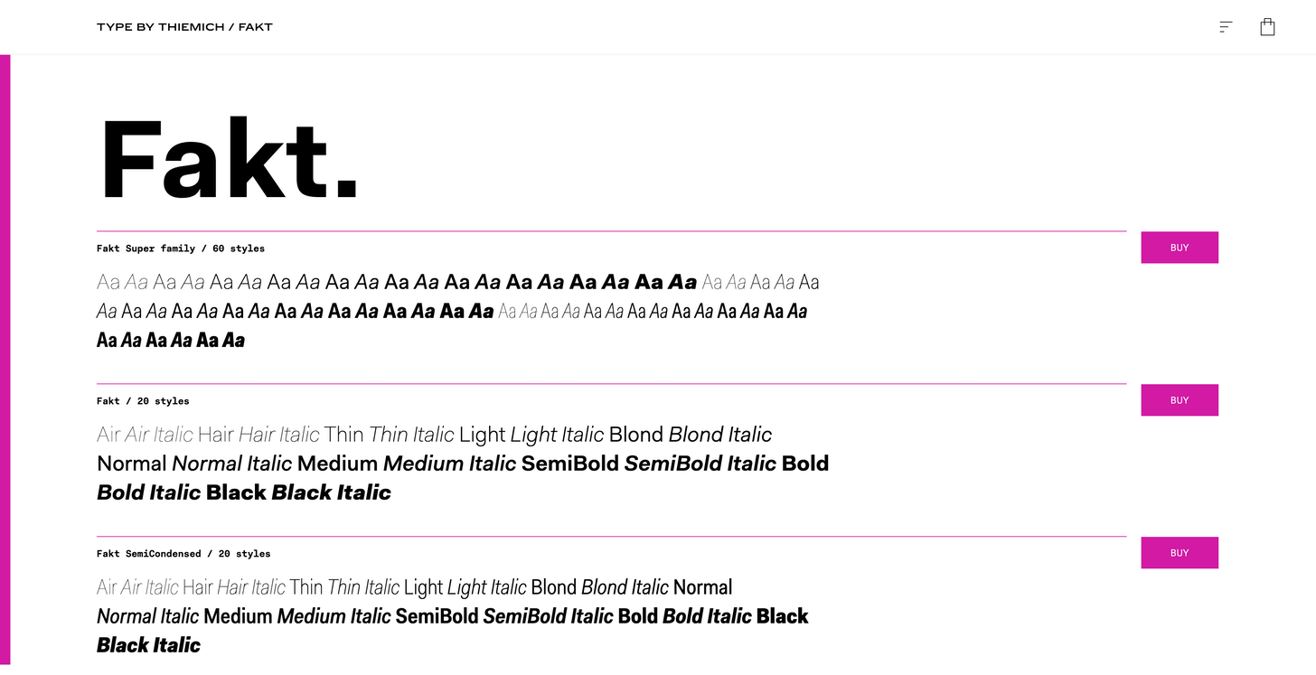 Fakt is a geometric/grotesque sans-serif typeface designed by Thomas Thiemich in 2010. Itâs a really unusual font in that it has both grotesque and geometric characters that are available as alternates, allowing the font to âtoggleâ between styles.