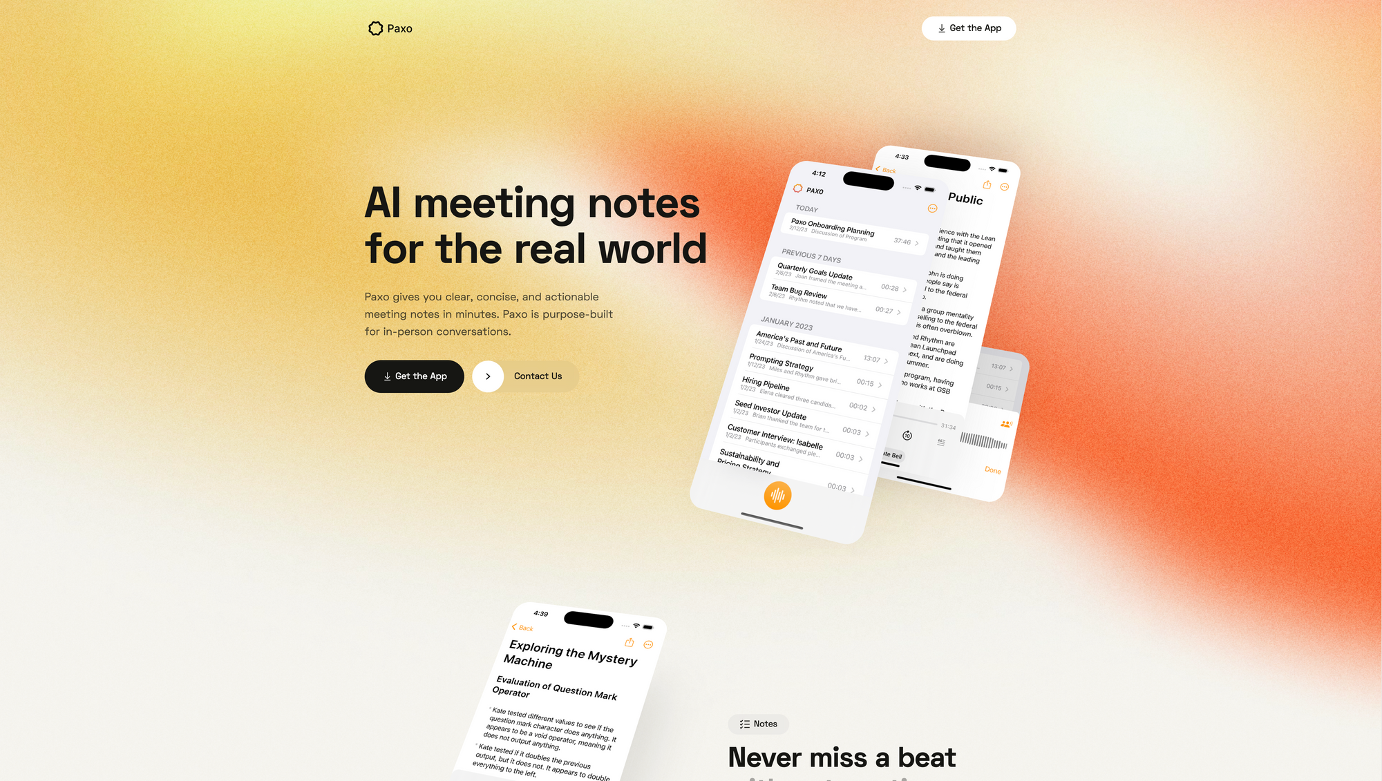 There is no doubt that AI-powered apps and tools are currently dominating the market across different areas and niches. There is a wide range of AI-powered writing tools, productivity tools like Slite use AI to give you the possibility to resurface knowledge from your own knowledge base, and companies like Diagram are integrating AI into design tools. Paxo is an app that leverages AI to give you clear, concise, and actionable meeting notes in minutes.