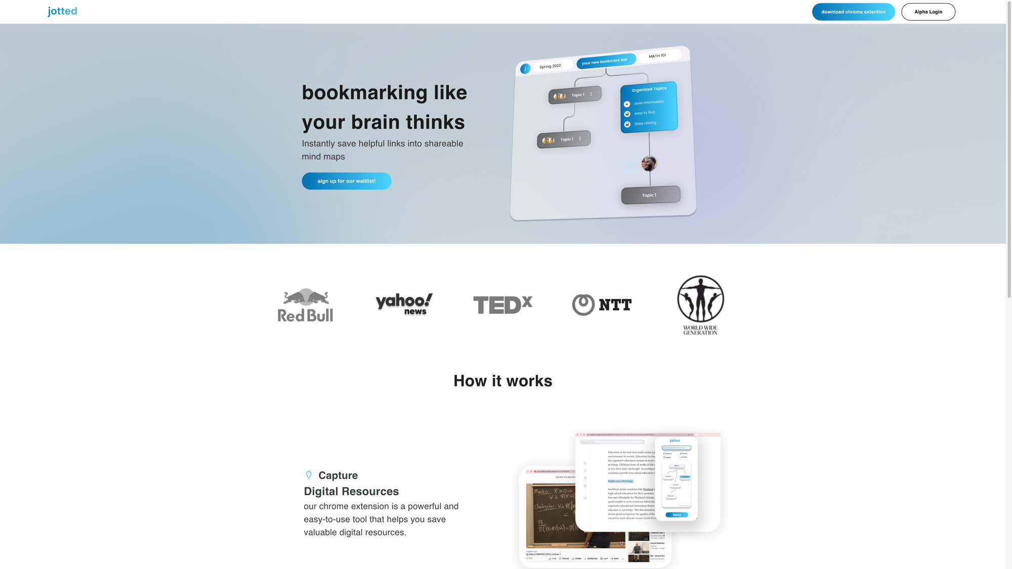 Jotted is an incredibly interesting tool since it follows a completely new approach to saving helpful links you are stumbling across online. If you ever wanted to bookmark links and save them into shareable mind maps, jotted is the tool you should check out. Bookmarking as your brain thinks.