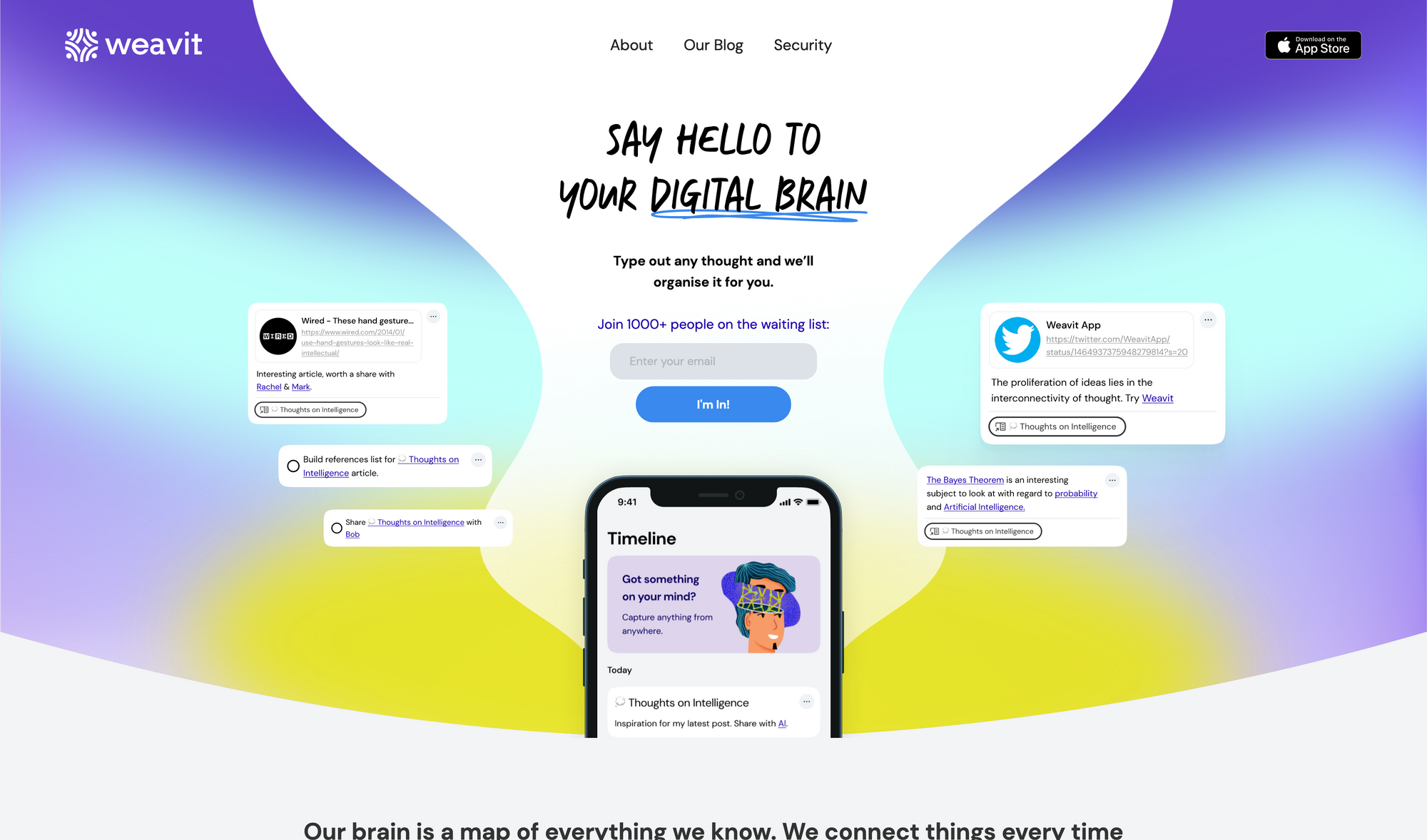 One of the most recent apps I have been trying out is Weavit. Weavit is an app (currently available for iOS only), that helps you create a digital brain of your thoughts and notes. If you have been looking for a mobile app to quickly jot down notes, thoughts, and tasks, and never have to worry about finding them again, Weavit might be worth a look for you. The mobile app was designed to capture all your thoughts, tasks, inspiration, ideas, and general notes with ease, whenever something comes to your mind. On top of that, Weavit finds and links people, topics, and events to your thoughts and tasks. Just like that, you will be able to create a digital map of your mind.