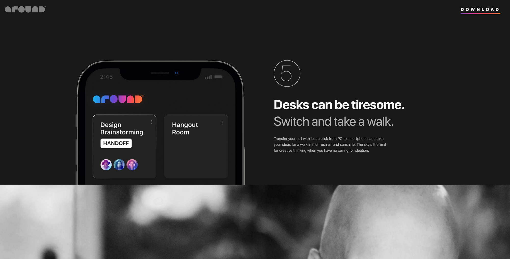 Around's mobile apps make it possible to transfer your call with just a click from PC to smartphone, and take your ideas for a walk in the fresh air and sunshine. Around is without a doubt one of the most exciting tools currently and I am super excited to see what they have planned for the future.