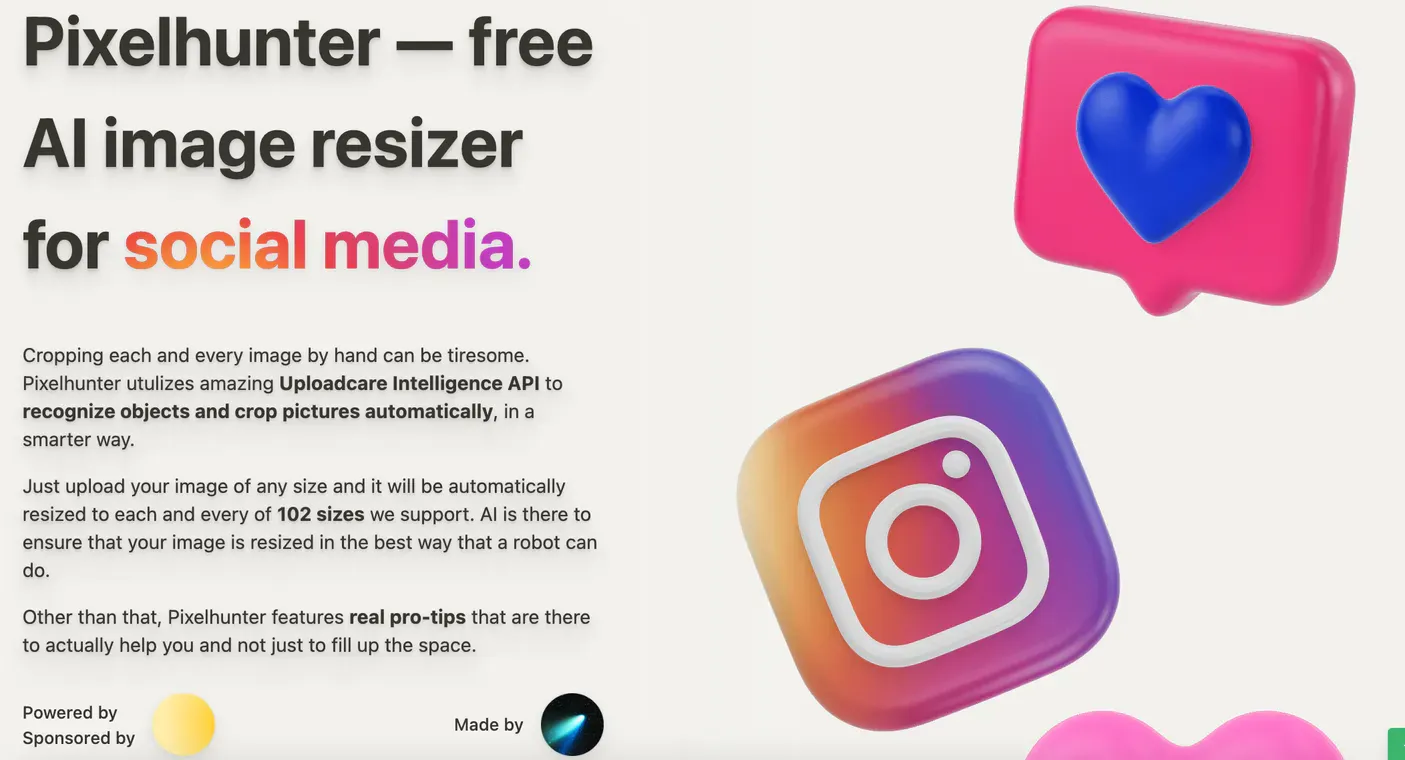If you are working across the field of Social Media Design Pixelhunter can be an incredibly useful tool and timesaver for you. Pixelhunter is a smart image resizer for all sorts of social media images and online publications. Pixelhunter is based on AI technology that adjusts pictures to the best quality to fit the most popular dimensions on media platforms. It even recognizes objects and crops images automatically to streamline your needs on media platforms. Everyone who has already prepared assets for several social media networks and other platforms probably knows that it is always a hassle to create every single asset manually and also adjust the images so they represent the message you want to communicate.