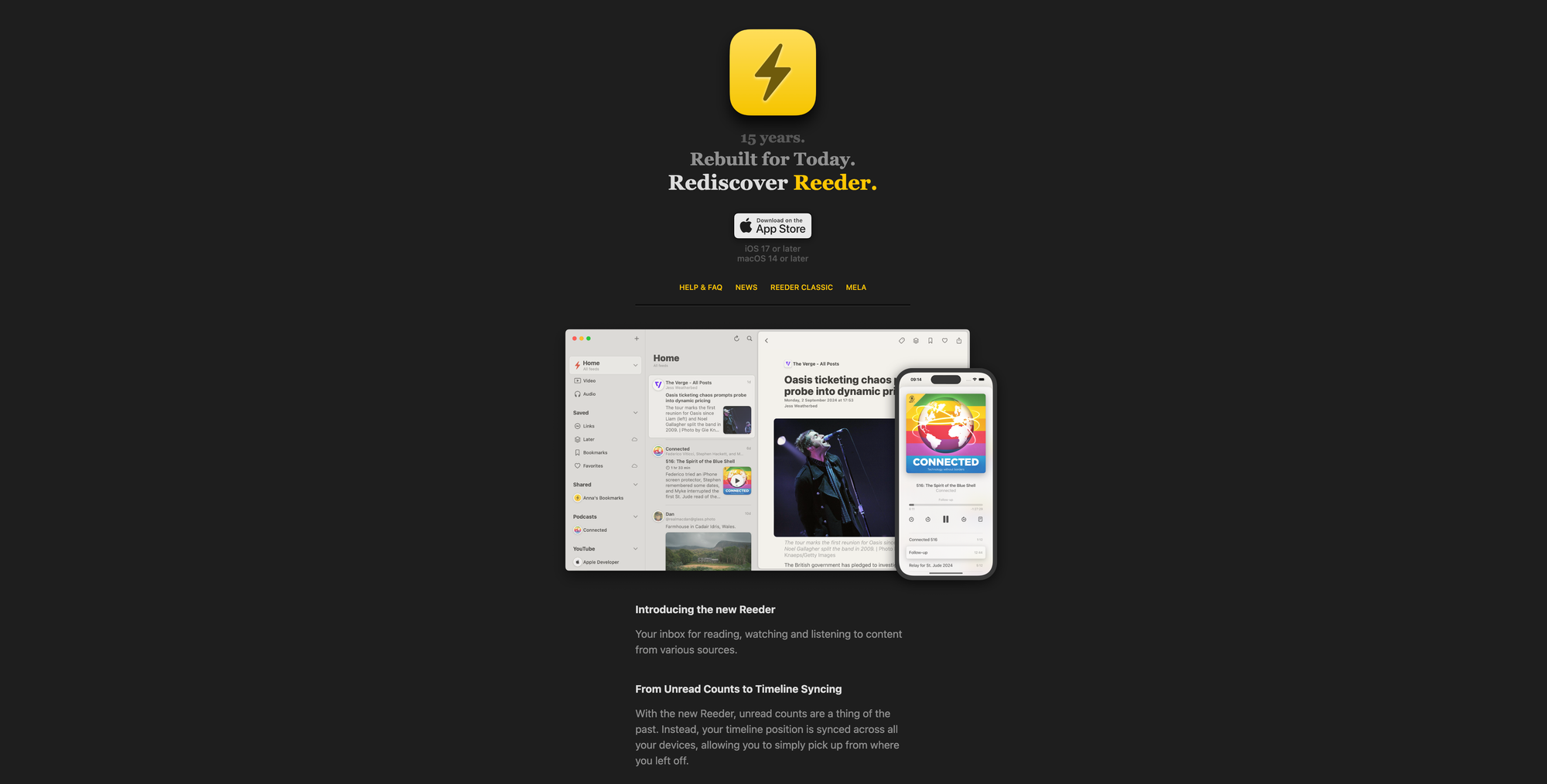 I love reading, and I love RSS to follow and subscribe to feeds from personal blogs as well as news sites. For years, I have been using Reeder (now called Reeder Classic) by Silvio Rizzi. Earlier this year, Rizzi announced that he started working on a new app. I got excited but also a little bit skeptical, as I hoped that Reeder Classic stays active. The new Reeder followed a different approach compared to Reeder Classic. Both allow you to subscribe to RSS feeds, however the new Reeder is more than just an RSS reader but rather an inbox for reading, watching, and listening to content from various sources.
