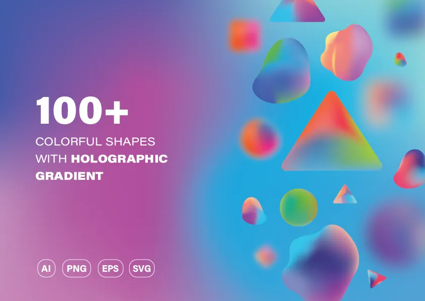 If you are looking for ways to web designs, logos, print designs, social media designs, more eye-catching, I would like to recommend "Colorful Holographic Shapes" by Riva Yudha, a great resource of over 100+ eye-catching vivid holographic gradients that will be a perfect fit to apply onto your web design, logos, any printed designs (business cards, posters, flyers, etc), or social media posts such as Instagram, Twitter, Facebook, etc. Each shape variants comes in .ai and.eps file format so you can easily customise and tailor them to your needs. On top of that, they are also available as transparent .png and .svg so you can straight use them in your designs.