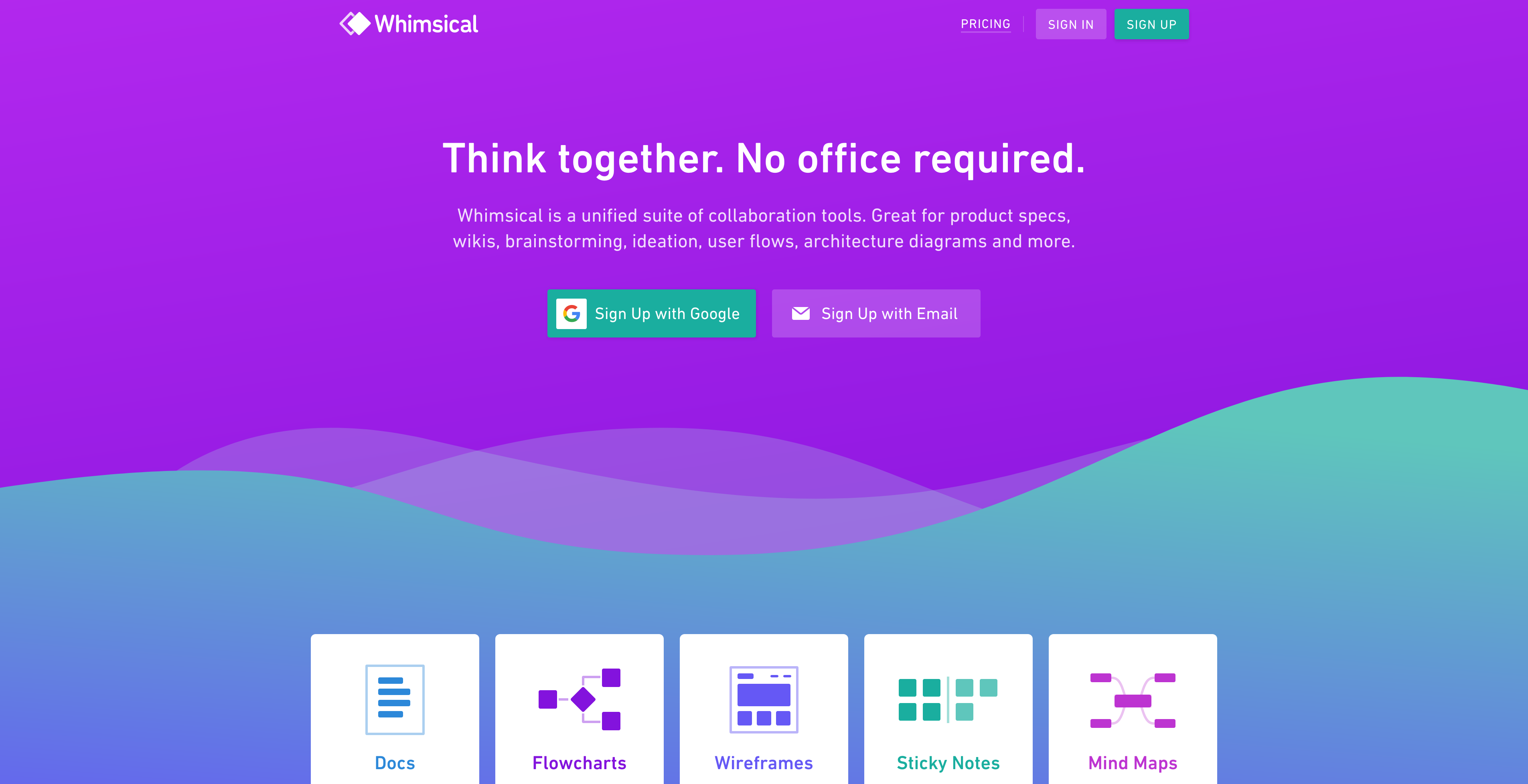 Whimsical is one of my favorite tools if collaboration work matters. Whimsical unifies docs, brainstorming, ideation, user flows, architecture diagrams, and more, all within one single tool to boost your productivity while working across a team. With Whimsical you can document everything within one tool. No need to switch back and forth between different tools. Start your brainstorming, ideation, and notes all within Whimsical and move on fast with Flowcharts, Mind Maps, Wireframes, and more. If you work within a Doc in Whimsical you can collaborate in real-time with your whole team. It features a super nice writing experience and is pure joy to use if you want to take meeting notes, a team wiki, a remote interview, or anything else.
