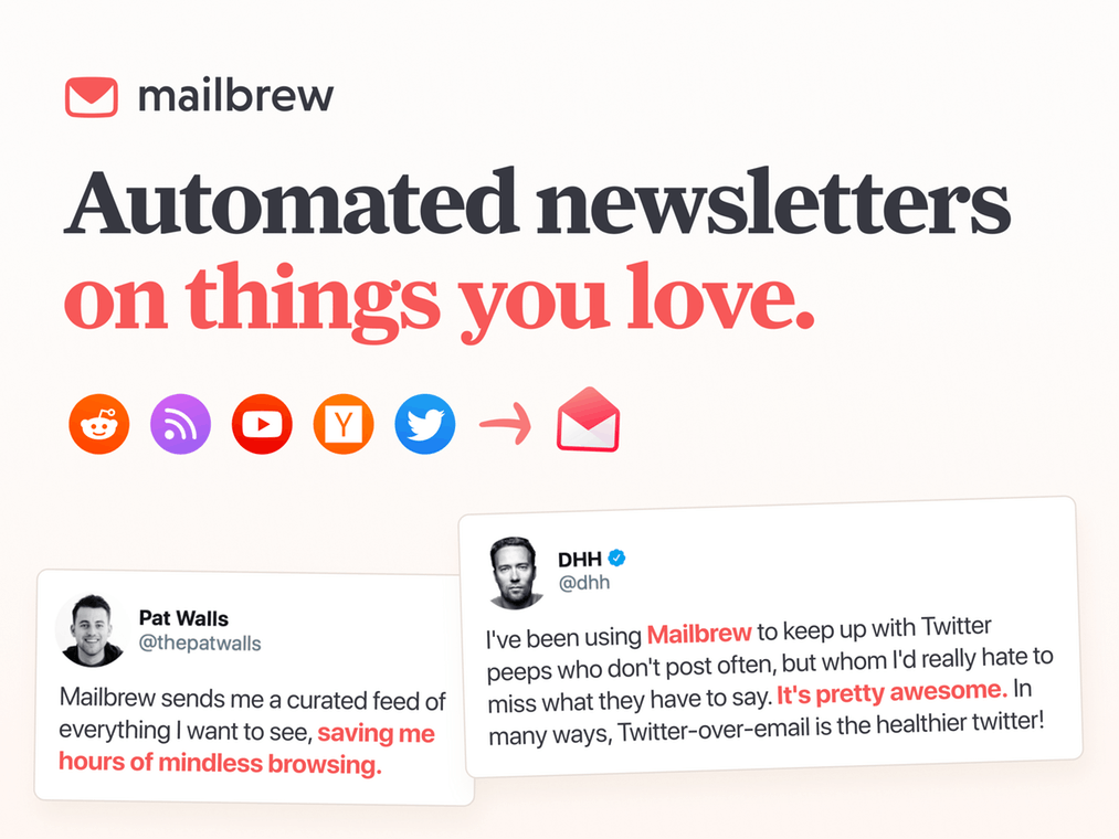 Save hours of time spent checking sites and scrolling feeds, by receiving automated email digests on the things you love. Pick your sources, and get the content you need on your schedule.