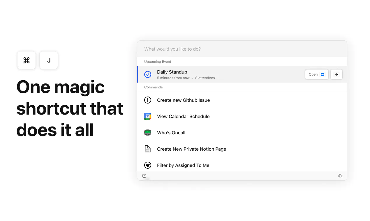 Command Bar seamlessly integrates with your Calendar, so you launch your next meeting blazingly fast or simply take a quick peek at your calendar. If you want to quickly open a document or start writing a new one, Slapdash provides you with insane speed in doing so. Also, if you want to open a specific Notion document, simply type in the name and open it (the Notion document will open within the desktop app). But it does not stop there.