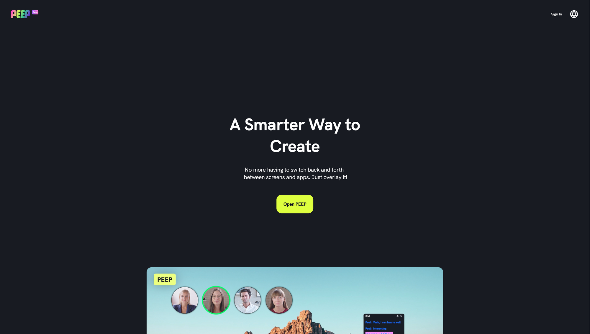 Peep, currently in beta, is a new video conferencing and video call app, that offers a smarter way to create, collaborate, share, play games, and a lot more. One of the biggest disadvantages of video conferencing tools like Zoom or Google Meet is the fact that you constantly need to switch back and forth between screens and apps. Instead, Peep gives you the possibility to overlay your video conferencing app with all the other apps you need during your meetings.
