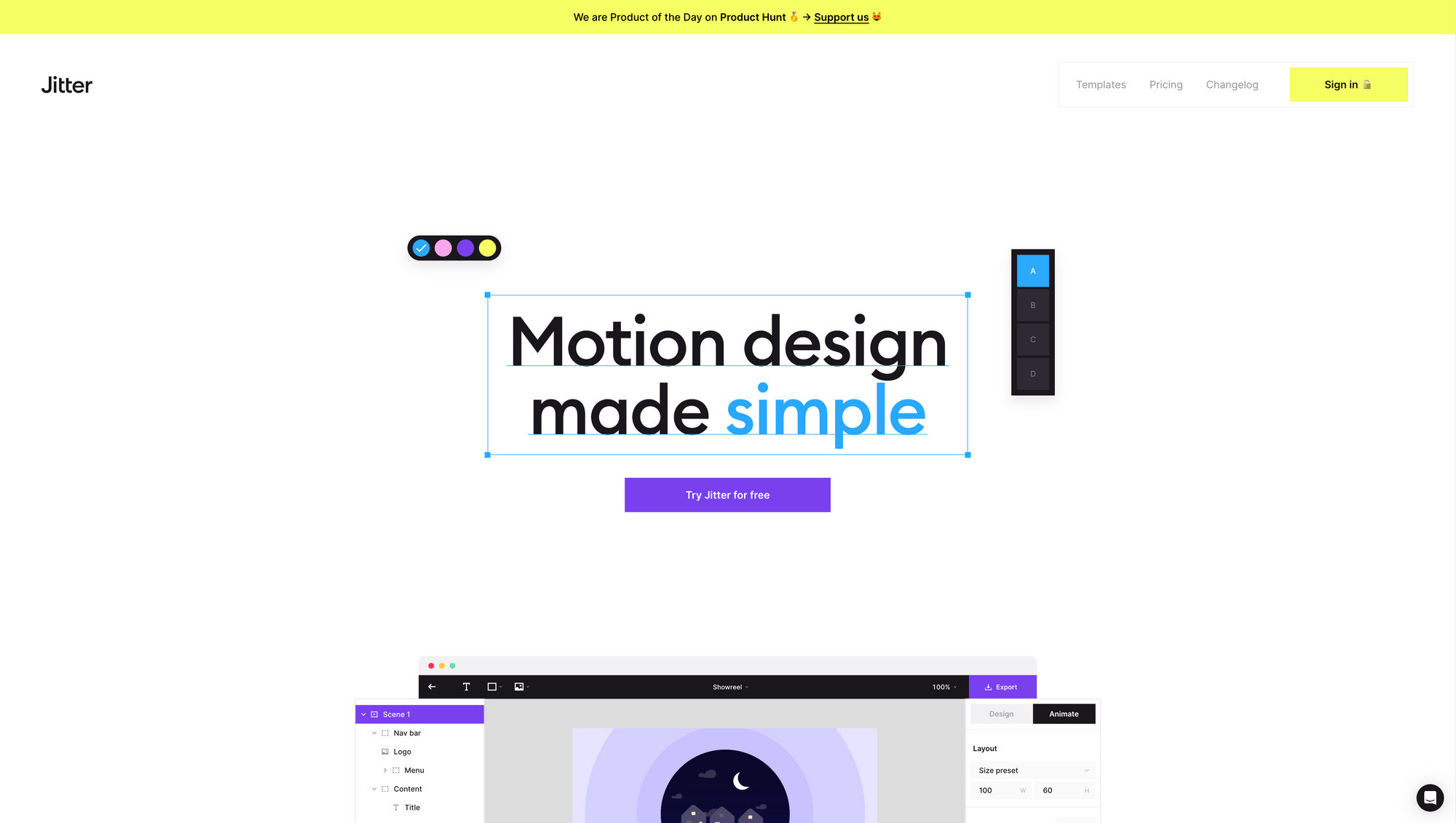 If you want to give Jitter a try, you can sign up for the Personal Plan which is free and includes unlimited files, export video, GIF, and Lottie, 720p and 30fps, import from Figma, and animation templates and presets. The Pro Plan which costs $12 per month (billed annually) includes everything from the Personal Plan plus removing the Jitter watermark, HD export (4k and 120fps), transparent background export, and priority support. Jitter Pro is free for students and educators.