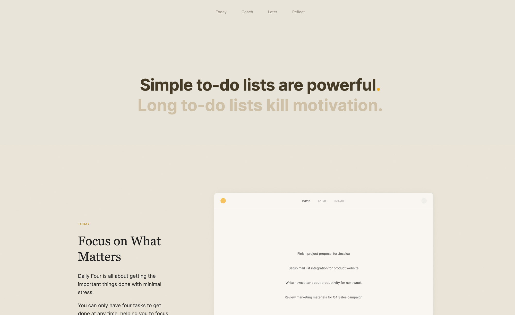 Besides that, Daily Four features an AI integration called "Coach" which is available at all times, has been trained on the latest productivity research, and includes everything that makes Daily Four great. As of writing this, Daily Four is in private beta. To get early access to you need to sign up for the waitlist on its website.