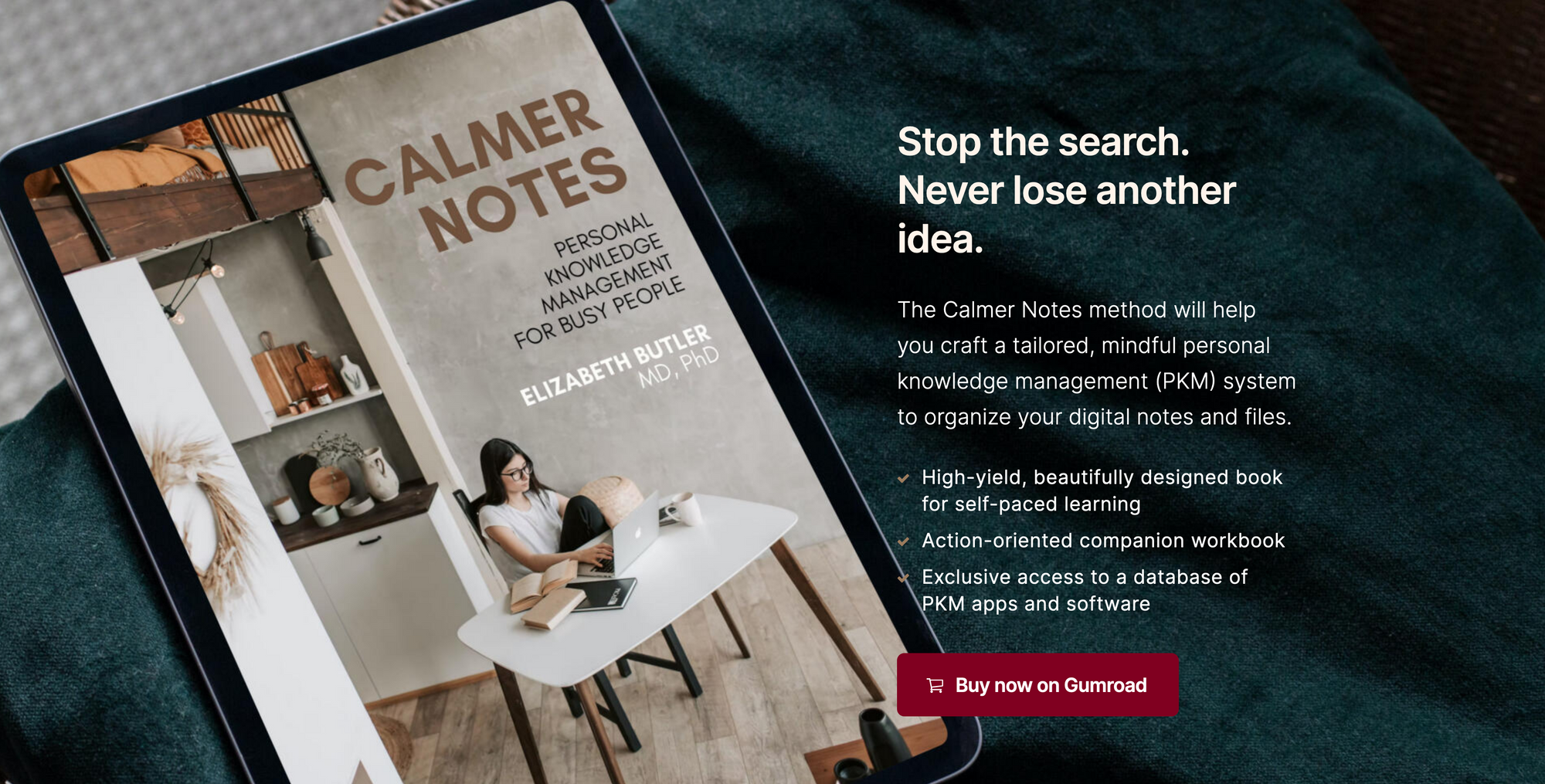 Recently, I bought Calmer Notes, an incredible resource by Elizabeth Butler, a physician, researcher, and working parent, who has spent many years figuring out the best ways to manage digital notes, documents, and information. In Calmer Notes, she shares her experience with you.