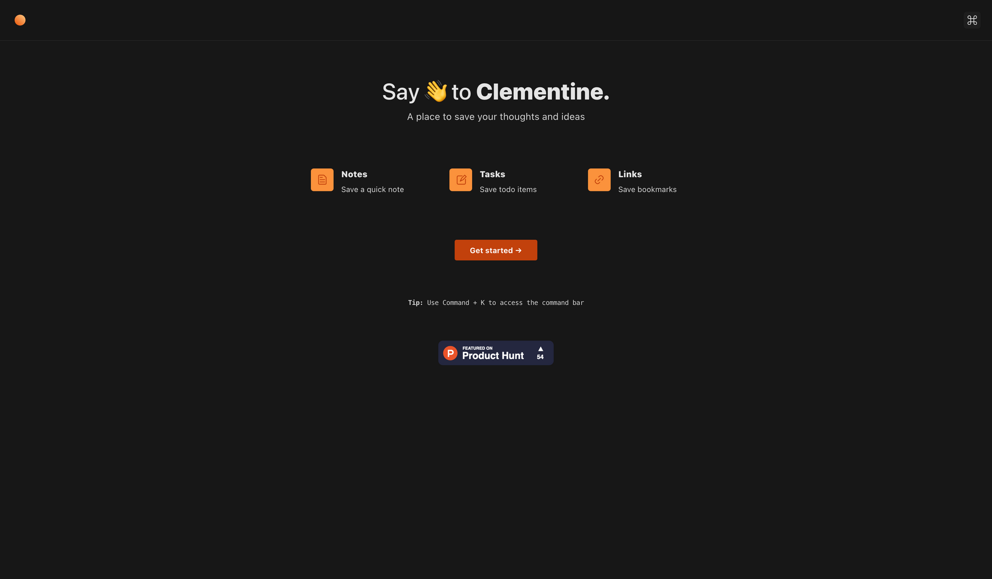 Clementine features a beautiful clear, structured, and lucid interface. The tool also features the popular CMD + K interface, that gives you the possibility to quickly add a note, task, or bookmark, or navigate through the app. You can use Clementine totally for free, and it is only available on the web.