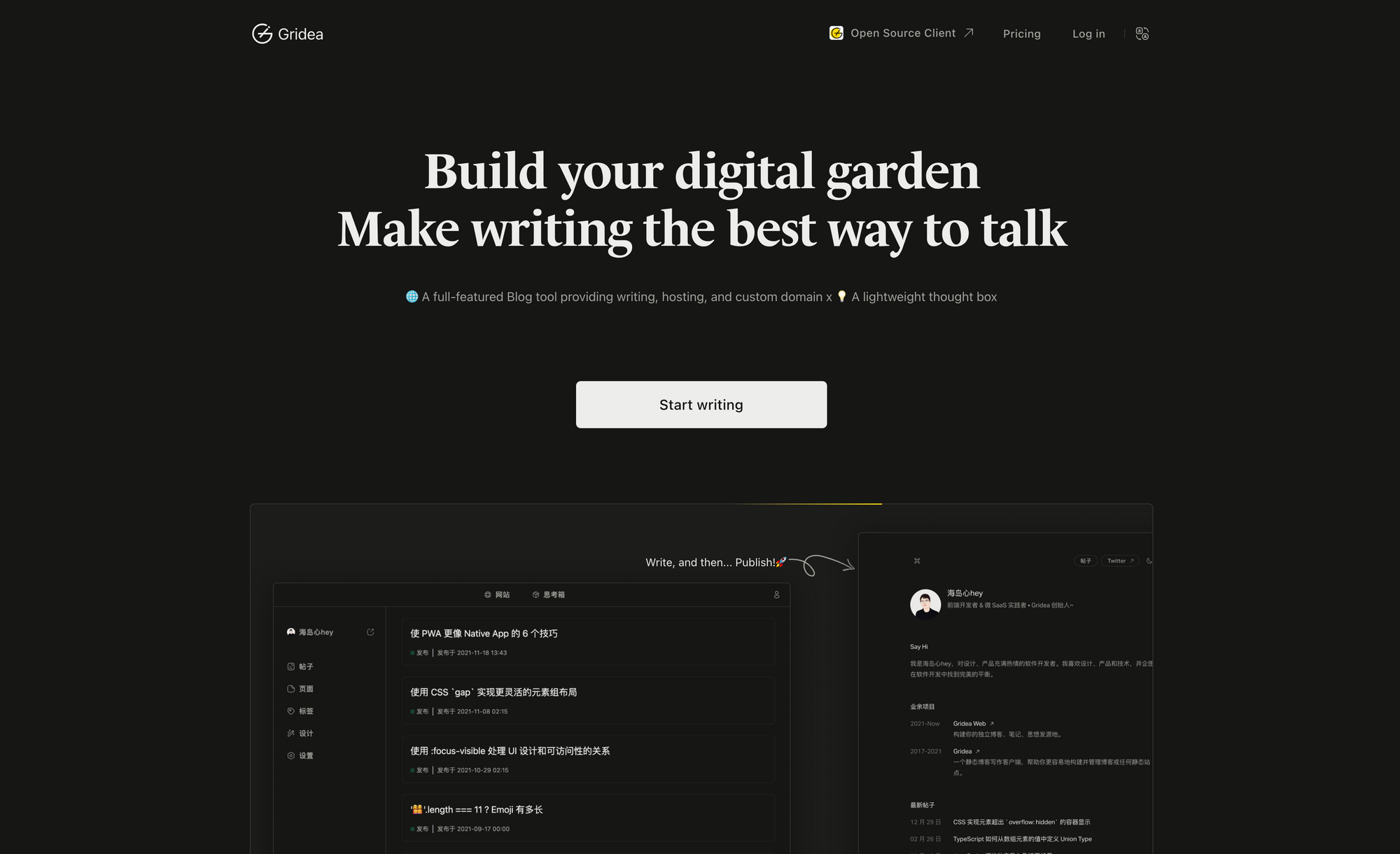 Gridea is a tool that claims to make the set up of your digital garden as streamlined as possible. Gridea is a full-featured blog tool providing a platform to write and host your thoughts on your own custom domain. One of the lovely advantages and features of Gridea is that the app has been optimized for mobile use too, which means you can write, edit, and publish with ease, no matter where you are. You can also be sure that your writings will be secure and your digital garden accessible and fast, since Gridea uses Vercel's edge network and Supabase's data storage, ensuring your website is safe, reliable, and fast.