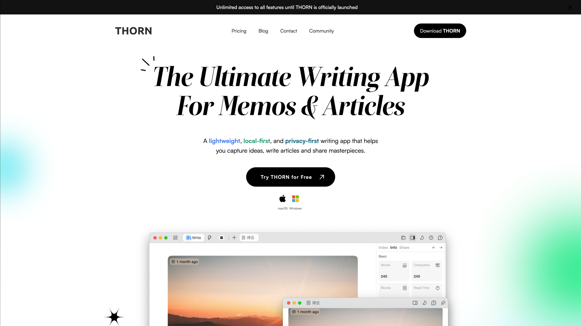 THORN is an interesting lightweight, local-first, and privacy-focused writing app, with a dedicated focus on writing memos and articles.