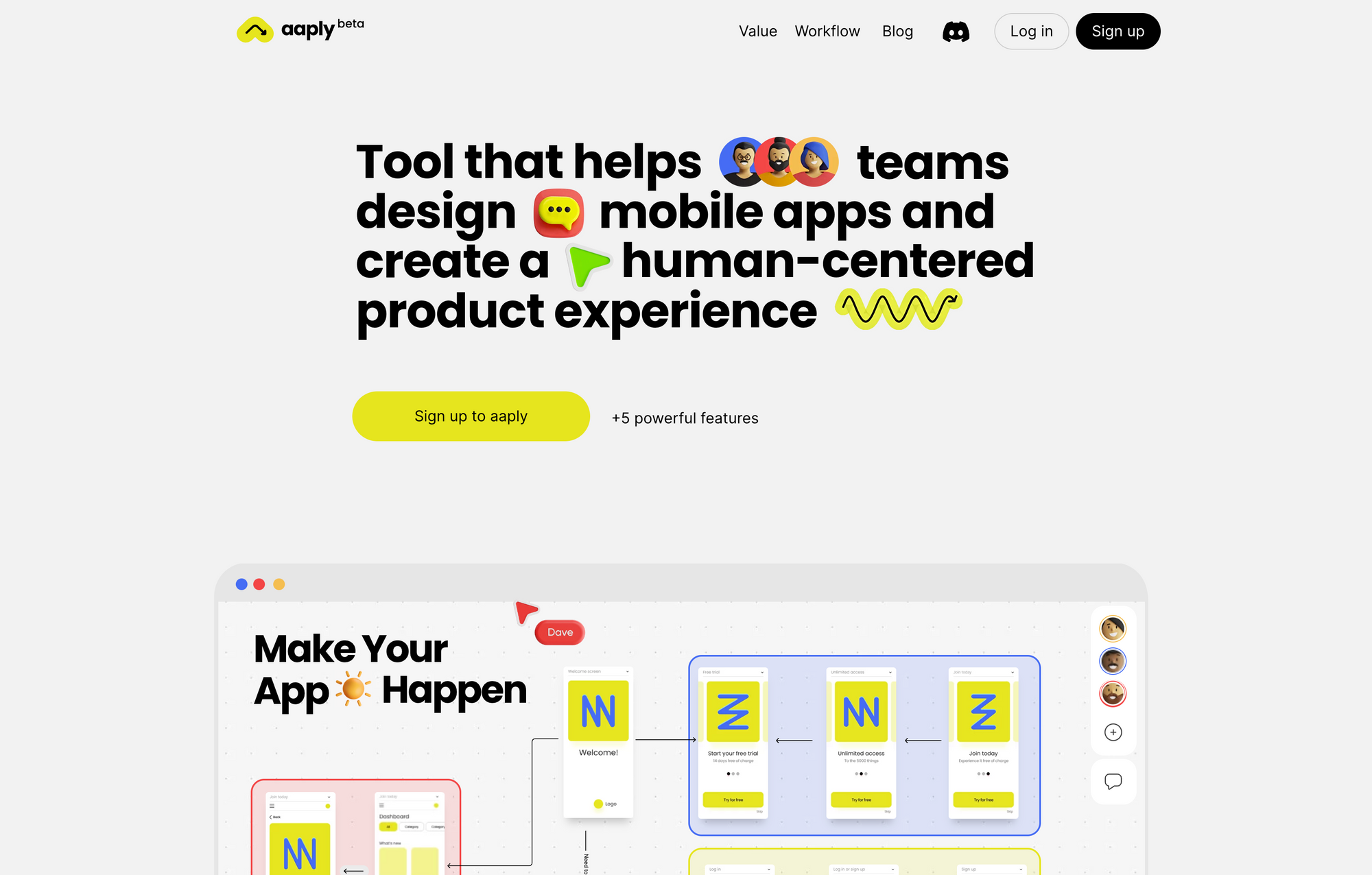 Aaply is an incredible interesting tool that helps you and your team design mobile apps and create a human-centered product experience. Aaply is not a design tool like Figma or Sketch, it reinvents mobile screen wireframing before you start working in Figma.