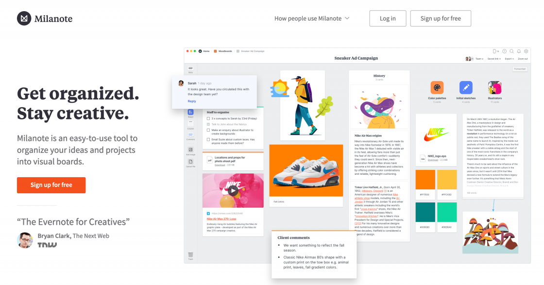 Get organized. Stay creative. Milanote is an easy-to-use tool to organize your ideas and projects into visual boards. Collect everything in one place.