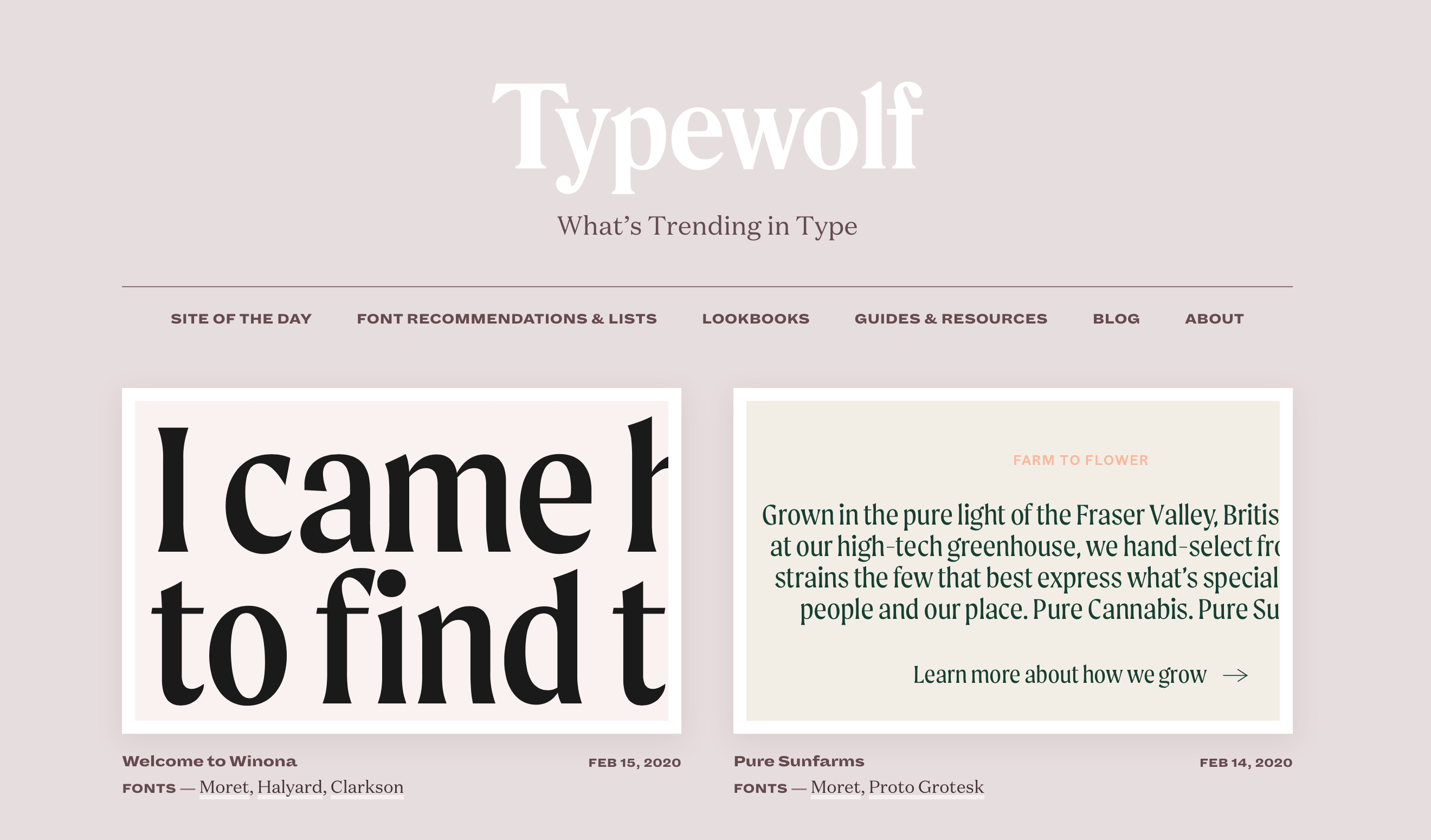 Typewolf got build by Jeremiah Shoaf with the idea in mind to provide a great resource for designers when they need to choose fonts for new projects. Seeing type samples set in âthe quick brown fox jumps over the lazy dogâ isnât very useful when it comes to web designâseeing how real type performs on actual websites is much more helpful. Jeremiah also noticed that other typography sites tend to be written from a type designerâs perspective rather than from the perspective of someone who actually uses type in their day-to-day work. Everything on Typewolf is approached from a designerâs perspective.