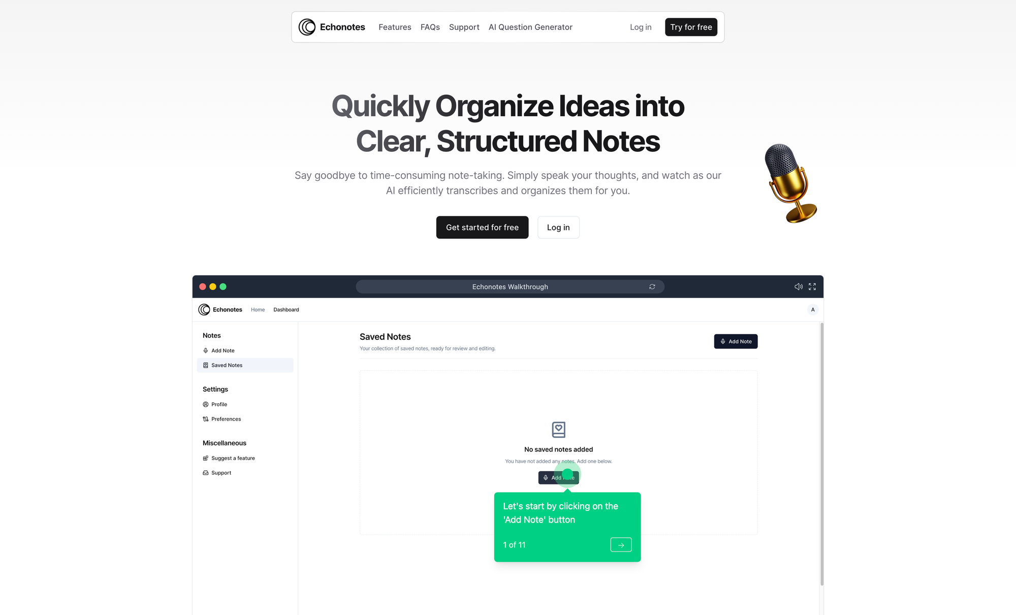 One of the goals of Echonotes is to streamline your note-taking experience by transforming your voice, getting AI-powered assistance, and easily switch between various text formats, all with seamless cloud accessibility. Echonotes powerful voice transcription lets you convert spoken words into text, fast and easy. Thanks to flexible formatting you can transform notes into various structured formats. Echonotes AI integration lets you engage with AI for smarter note enhancement. With Echonotes versatile editor, you can freely modify text. There are multiple use cases for which Echonotes can help you streamlining everyday tasks. When you are keeping track of meeting notes, Echonotes lets you record team discussions and easily generate meeting notes. For creating creative drafts, Echonotes can assist you while dictating stories or articles for immediate text drafts. Additionally, you can speak to set reminders or to-do lists for personal organization. When you are conducting research interviews, Echonotes allows you to transcribe recorded interviews for quick references and analysis. In case your are seeking to streamline your study notes, Echonotes will give you the possibility to convert lectures or study sessions into written notes for review.