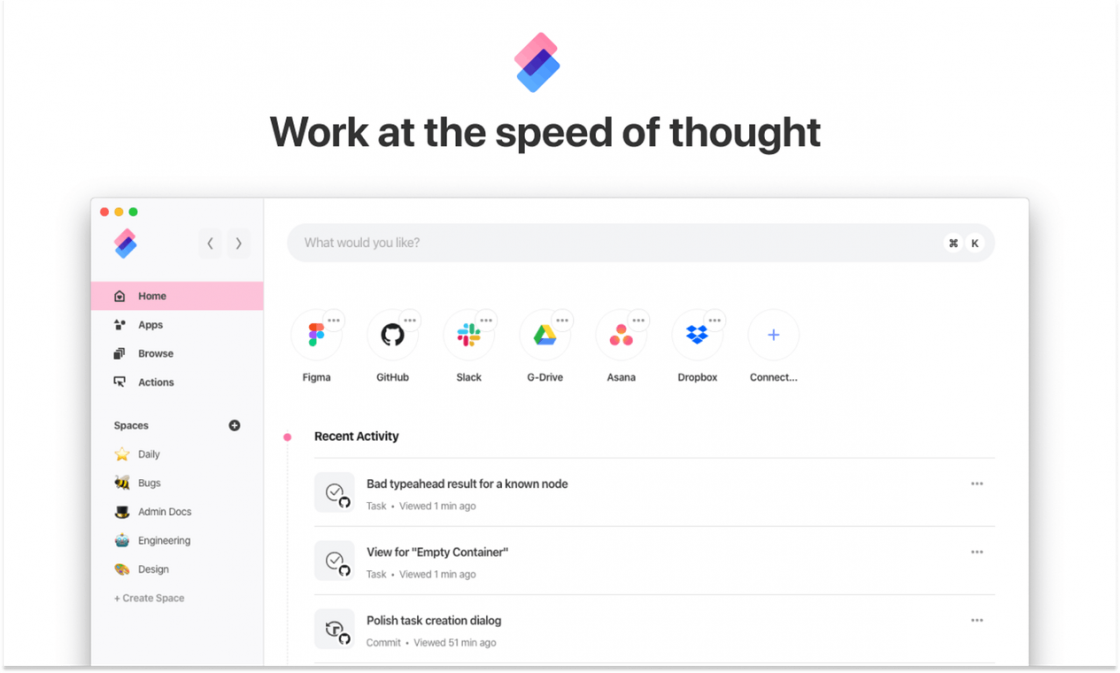 A rethink of how we work, with a focus on speed, ergonomics and fun. It's the missing operating system for your cloud apps.