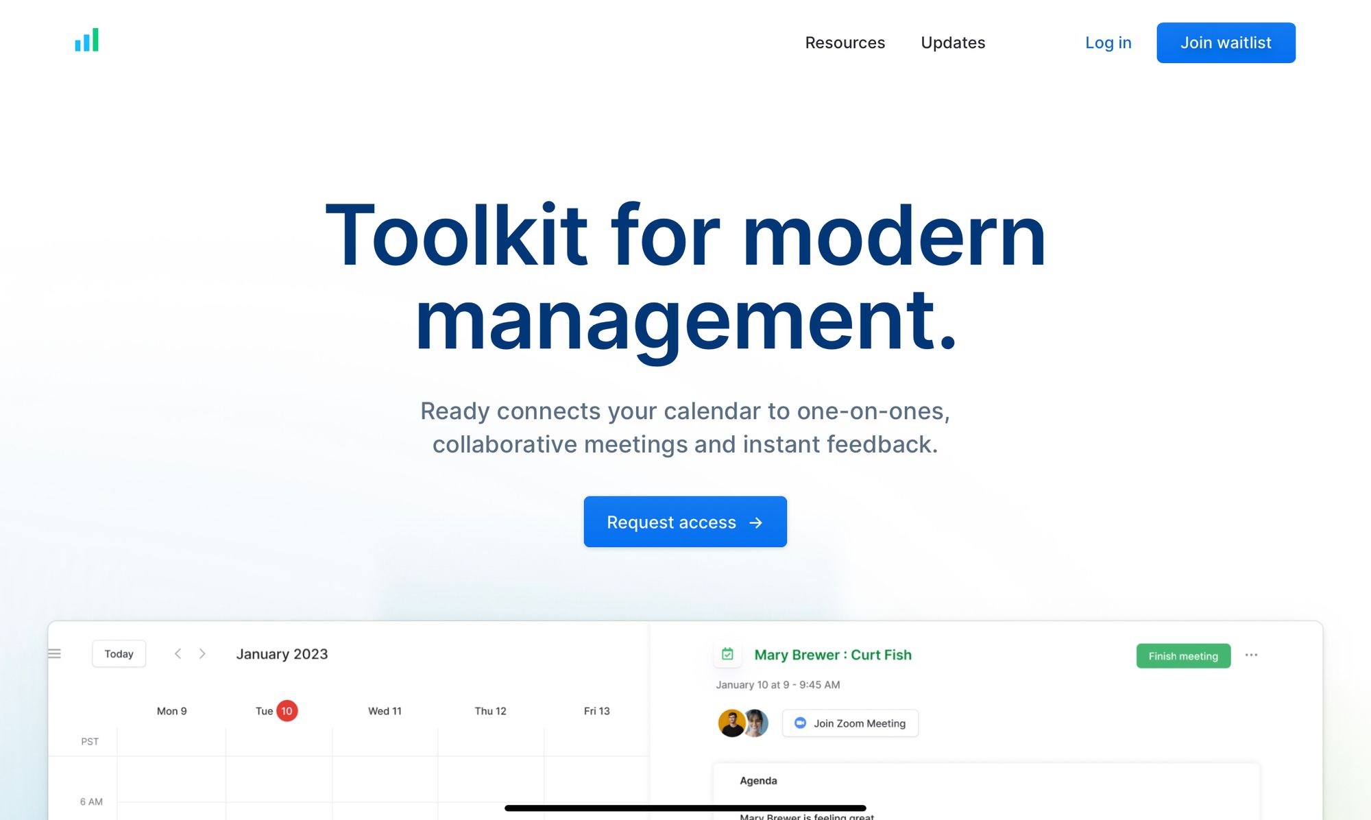 Ready is not your usual fresh and new calendar tool, by connecting your calendar to one-on-ones, collaborative meetings, and instant feedback, it becomes the toolkit for modern management.