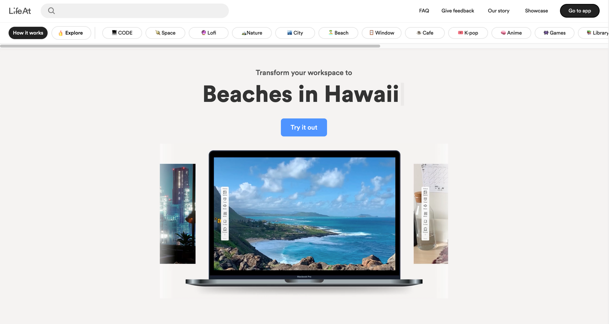 Head over to LifeAt, create an account, explore the different categories like Study with me, City, Library, Beach, and more to set up your space, invite others to your workspace, and get in the mood.