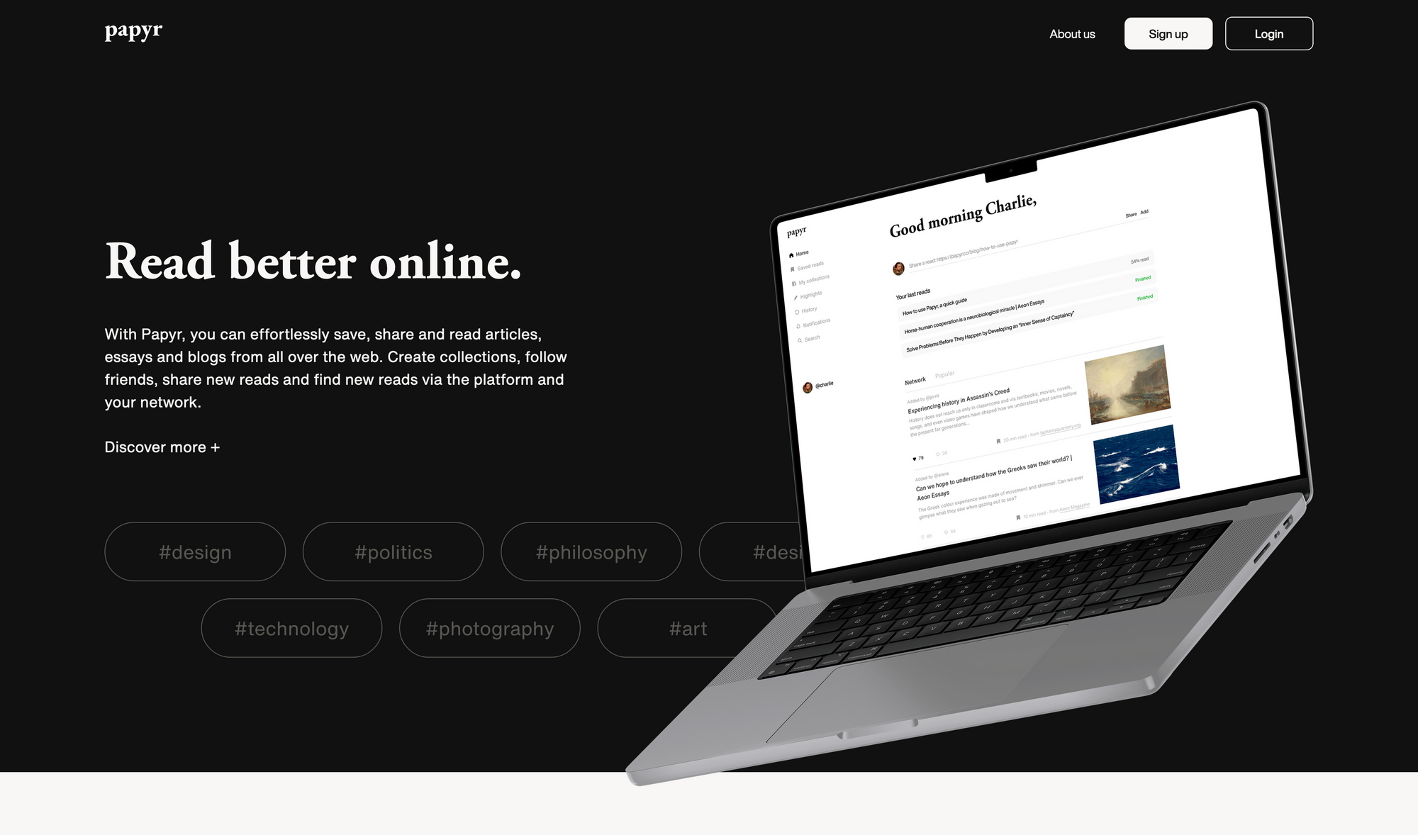 Personally, I have a growing library of blog posts and articles I want to read, but I do not stress myself to go through them. Whenever I have time and I am in the mood to read I go through my archive and search for something that catches my interest. Papyr makes it easy to organise your reads since you can create topical collections, highlight the most noteworthy read and even take notes within those. This is great to always find what you are looking for. On top of that, Papyr also functions as a discovery tool. Within Papyr you can follow friends to see what they are reading, browse through new topics, and simply see what is currently popular on the platform.