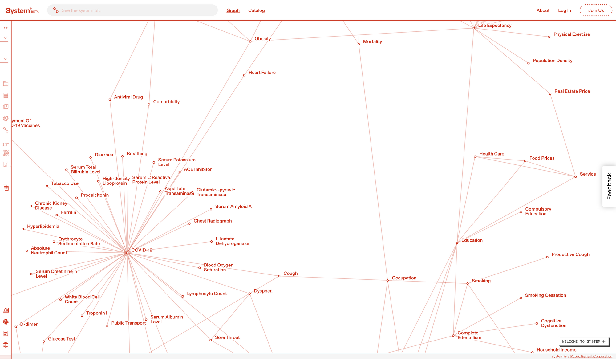If you are familiar with knowledge graphs that are part of Personal Knowledge Management tools to showcase the connections you have made while taking notes, you can think of System as the knowledge graph of our world showcasing the connections of any topic with others. System works by gathering statistical evidence of relationships between topics. It organises and visualises the gathered information with all the supporting data by its side. The result is a holistic view. It is pure joy to use and browse.