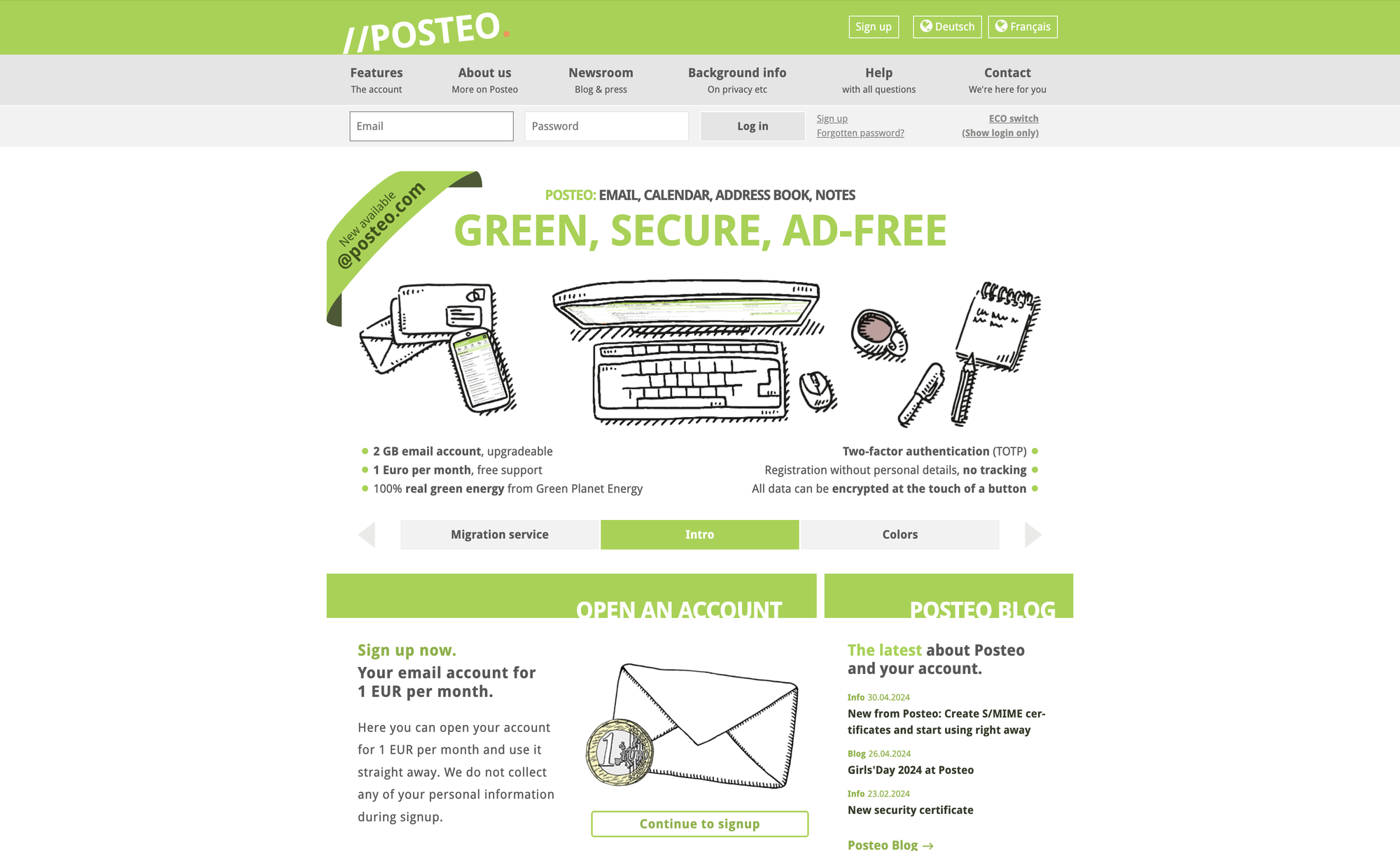 Posteo is another highly secure email, calendar, address book, and notes service from Germany. It is powered by 100% green energy from Green Planet Energy, all your data can be encrypted at the touch of a button, and you can register without personal details, which means zero tracking. Posteo has been founded in 2009 and since then it is providing an impetus for more sustainability on the internet and standing for resolute and sustainable business practices. It is an independent email provider based in Berlin. Their offering of anonymous and sustainable email accounts, address books, and calendars are suited for anyone who has had enough of companies that are collecting data, inboxes polluted with advertising, and all-pervasive surveillance on the internet.