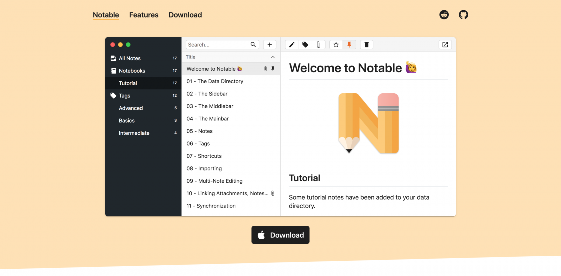 Notable gives you a very powerful Markdown editor, it's the same one VS Code uses in fact, so features like multi-cursors, a minimap and best-in-class syntax highlighting are built-in.