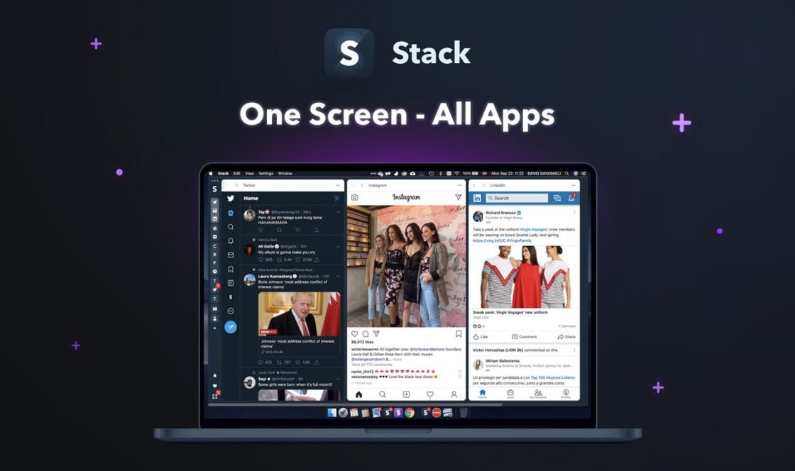 Open, organize and use multiple web apps on a single screen. Stack your apps by categories or projects. Manage social media with multiple accounts. Compare information sources at a glance. For social media, texting and multitasking.