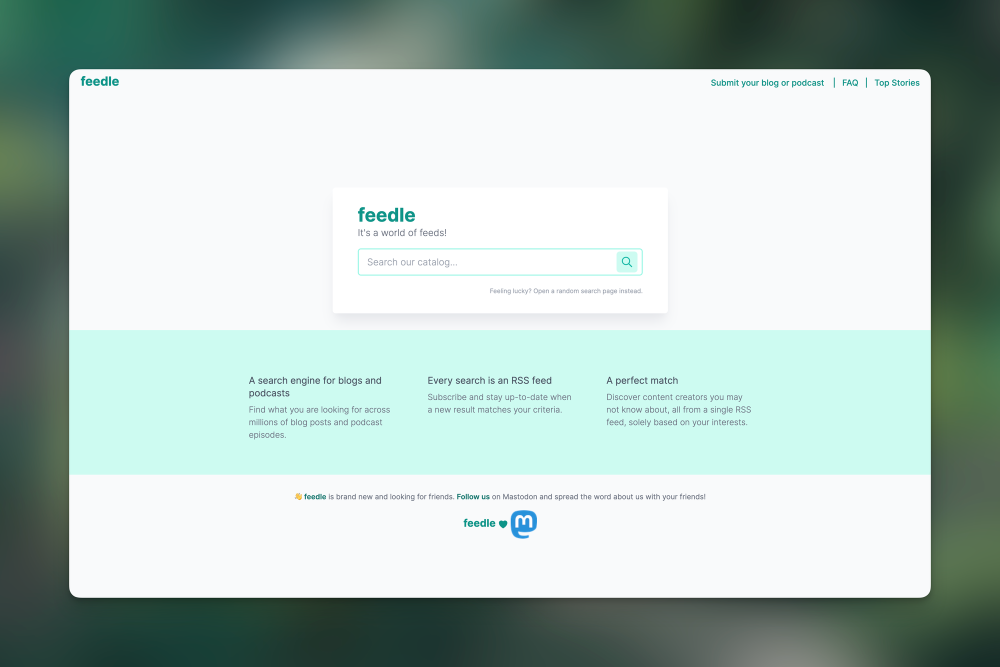 Feedle is a search engine for blogs and podcasts, that gives you the possibility to search across millions of blog posts and podcast episodes from independent creators. Every search is an RSS feed, which means you can subscribe and stay up-to-date when a new result matches your criteria. And besides that, it is an awesome way to discover content creators you may have not know about, all from a single RSS feed, that is based on your interests.