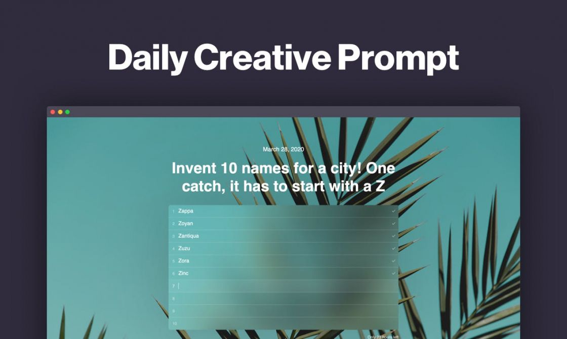 Daymind is a Chrome extension that helps you train your creativity with a fun, witty and challenging creative prompt every single day. Each prompt is crafted to improve your original thinking, ability to generate new ideas and expand your imagination.