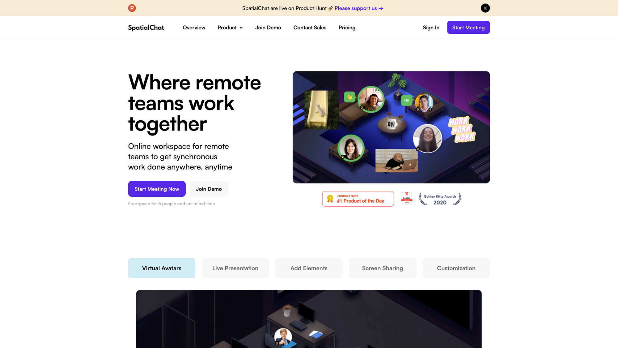 SpatialChat is reinventing the way remote teams are getting and working together. It is an online workspace for remote teams to get synchronous work down anywhere and anytime.
