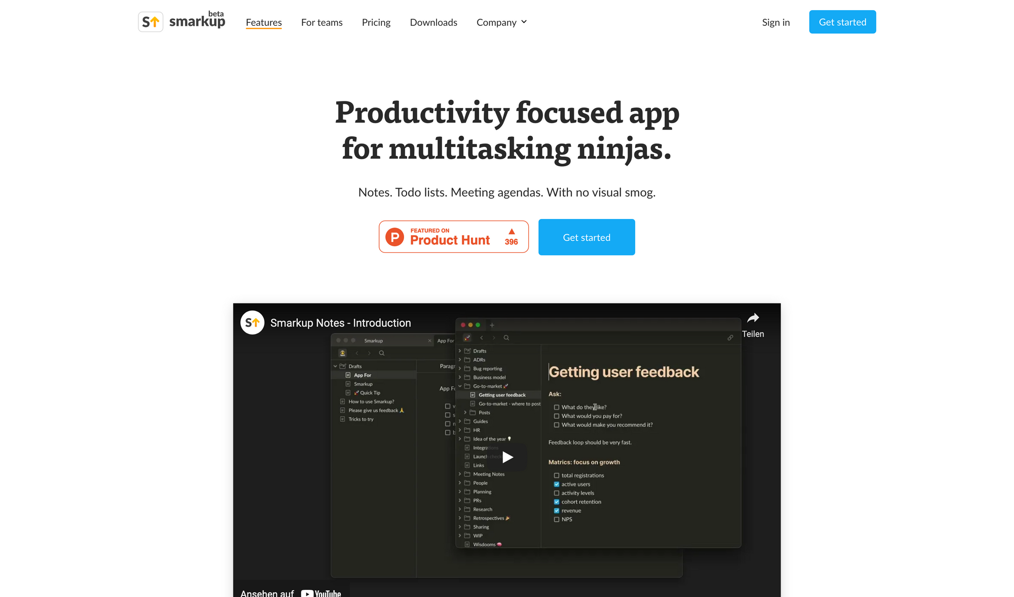 Smarkup is an productivity app where multitasking meets simplicity. Smarkup gives you the possibility to use multiple tabs and multiple windows for your notes, tasks, and meeting agendas. The tab feature works just like your browser. Open multiple tabs to work on multiple pages, notes, and tasks at once. Besides that, Smarkup keeps things simple. The interface of Smarkup is calm and clean, with no unnecessary visuals, pop-ups, elements, or flashing hover effects and animations. Smarkupâs minimal design and interface let you work without any distractions, so you can clearly focus on the notes you take.
