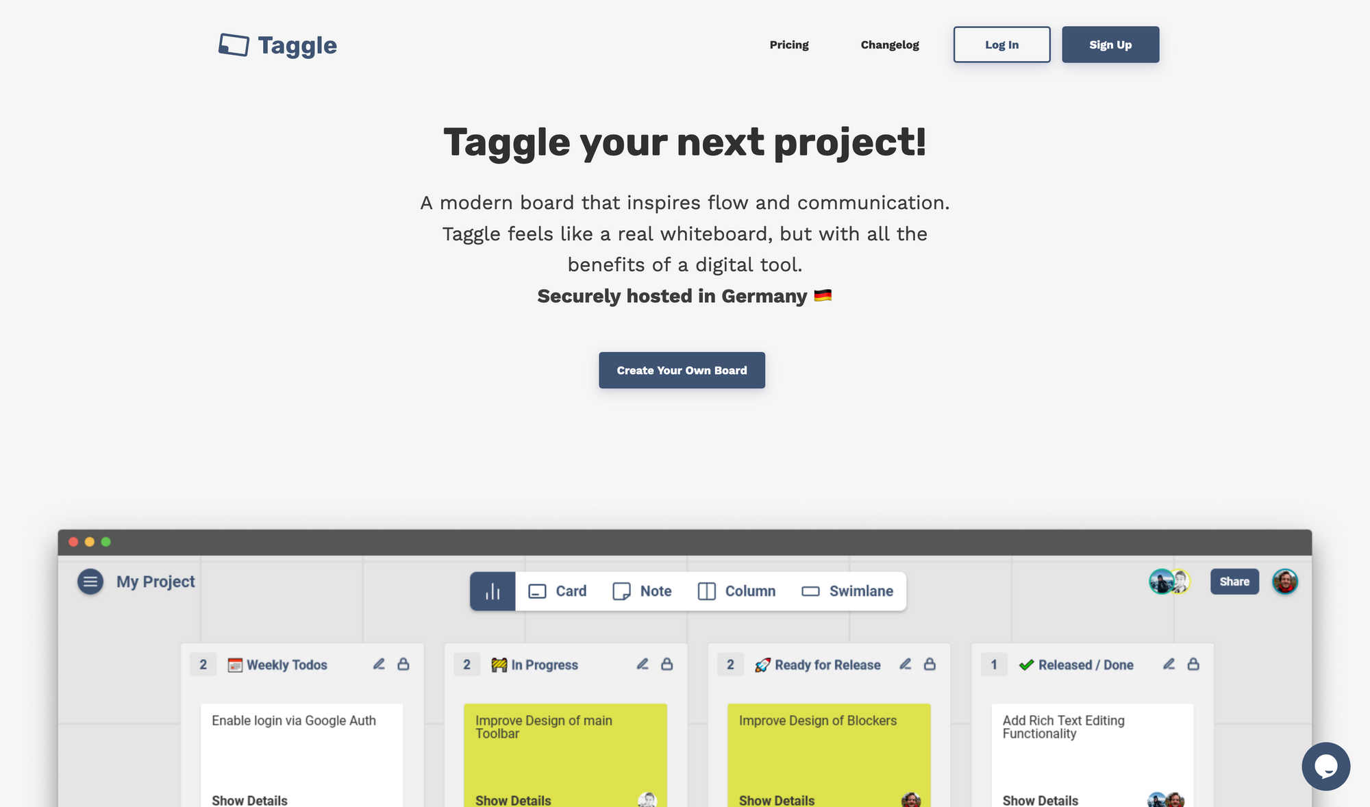 Taggle is a tool that feels like a real whiteboard, but with all the benefits of a digital tool. If you are struggling with your projects, give Taggle a try to experience how it inspires flow and communication.