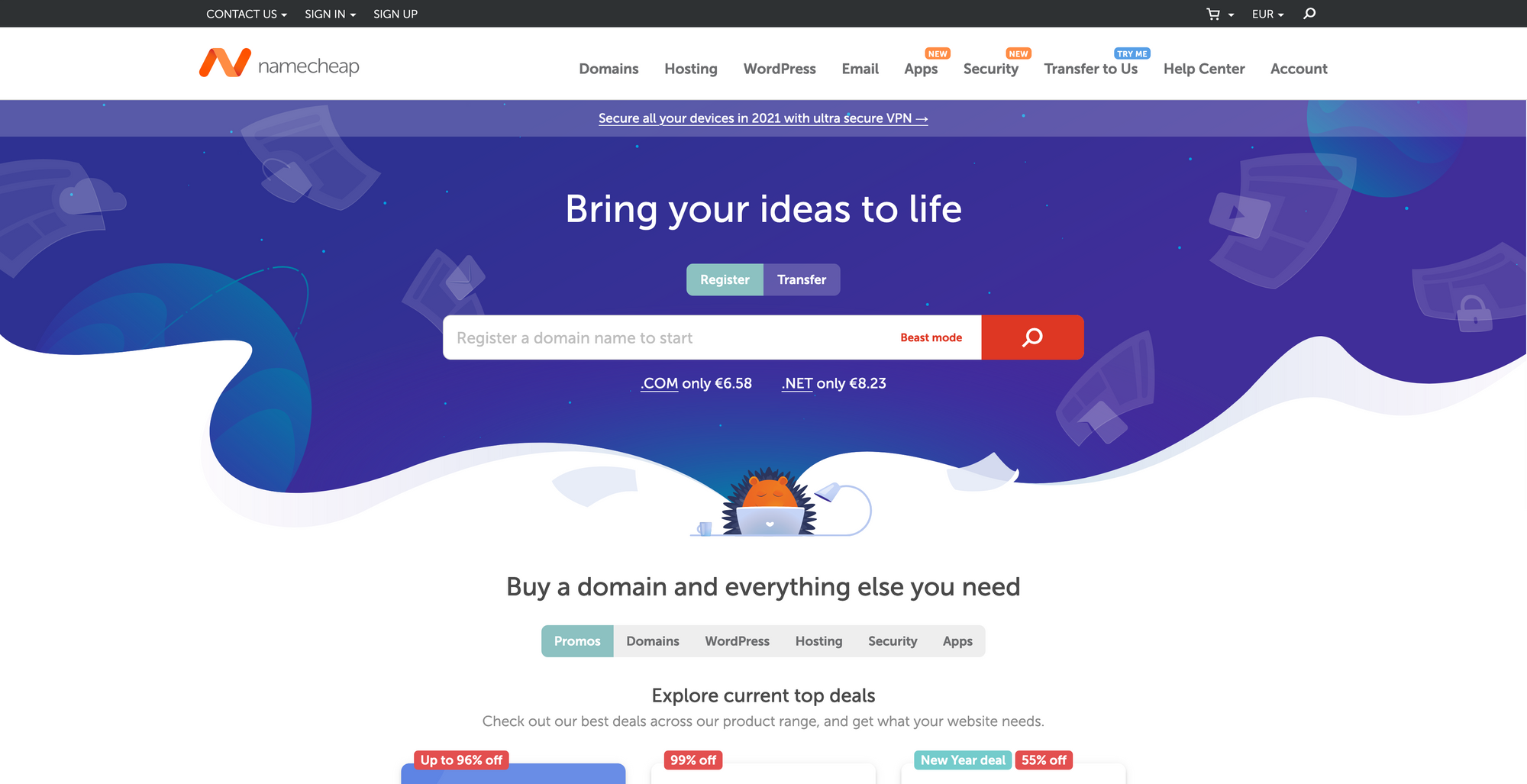 For Creativerly’s domains (and also in general) I always use Namcheap. There is no special reasoning why I use Namecheap, I think they have good prices, a great customer support, and everything works fine, but I am sure you will experience same results with other Domain Providers.