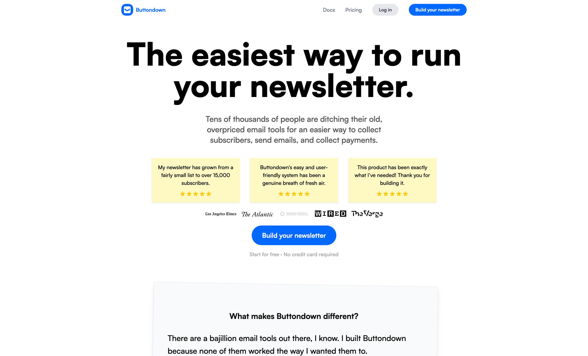 Buttondown is another great Substack alternative, especially since it is focusing on giving writers an easy, straightforward, privacy-focused experience while writing and publishing content. As featured in various publication like The Atlantic, Wired, Daring Fireball, and others, Buttondown is among the easiest ways to run your newsletter, collect subscribers, send emails, and collect payments.