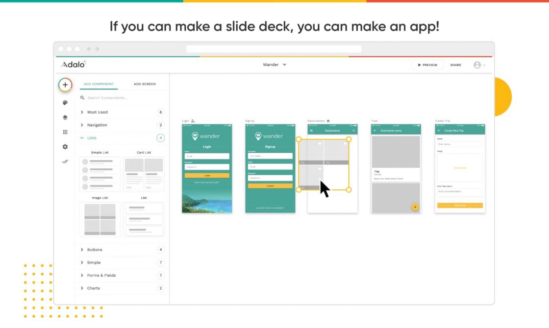 Adalo is a no-code platform for building powerful web and mobile apps, that can include payments, notifications, and more. Publish to the App Store, Google Play and the web!