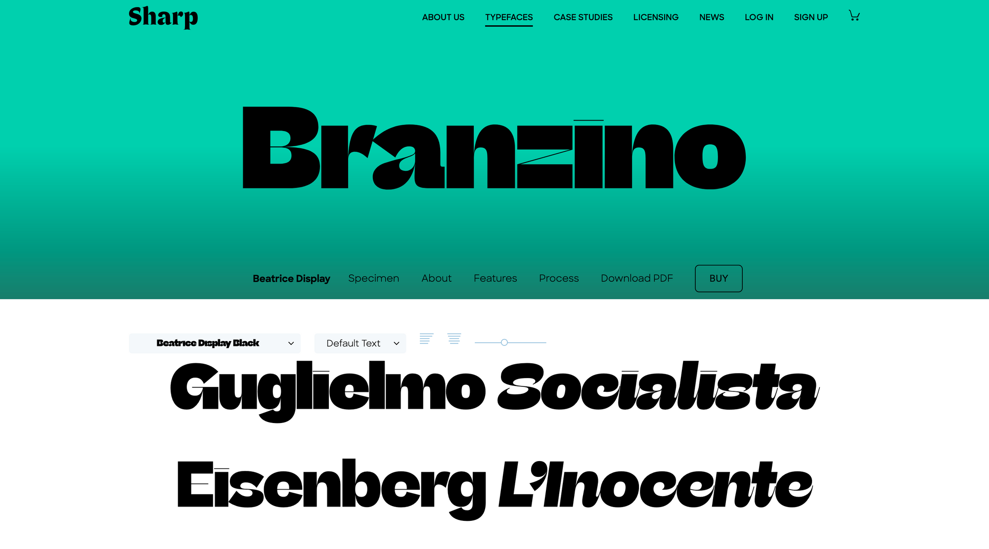 Beatrice Display is a sans-serif display face released through Sharp Type in 2018. The design features high contrast with hairline horizontal strokes.