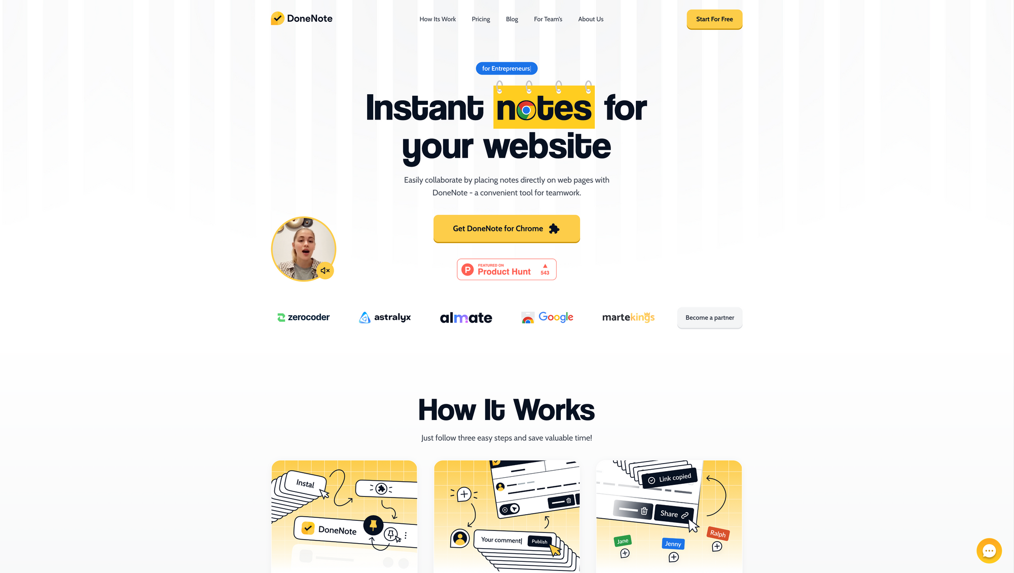 With DoneNote, collaboration, giving feedback, and sharing thoughts and ideas become incredibly easy. No matter if you are a designer, a product manager, a developer, an entrepreneur, or an agency, with DoneNote you get the possibility to directly place notes on web pages, embracing collaboration, and providing a convenient tool for teamwork.