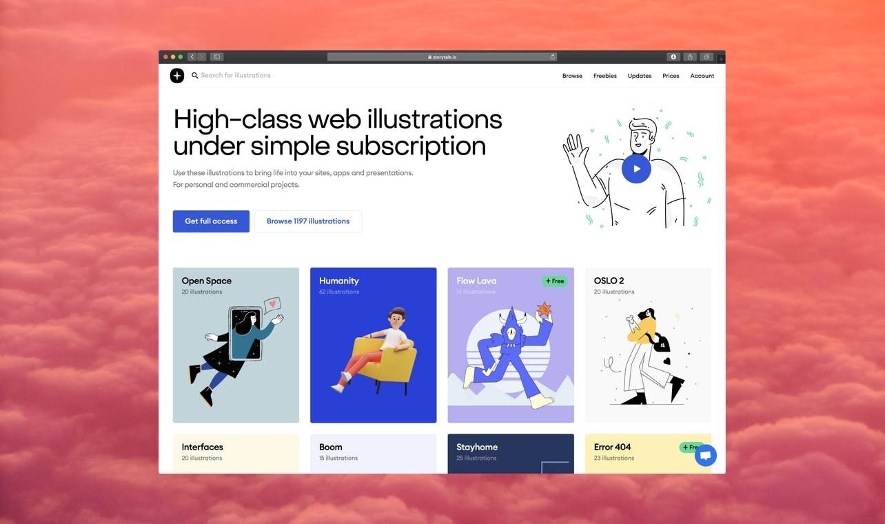 Storytale is a platform with vector, raster, and 3D illustrations that grows every week. Get access to over thousand stories about business, lifestyle, medicine, and IT world by monthly or yearly subscription at a very tasty price.