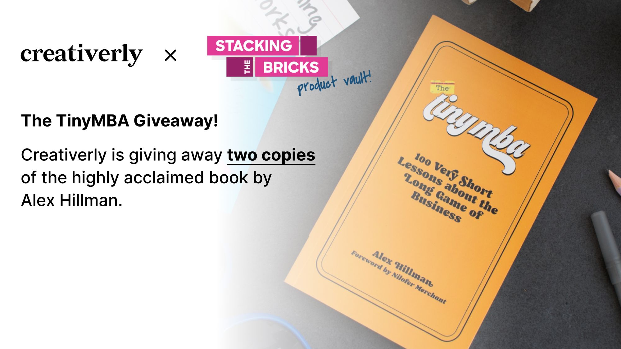With this issue of Creativerly, I am excited to present to you my first giveaway! What am I giving away? Two copies of The TinyMBA by Alex Hillman, a highly acclaimed book packed with 100 ideas to evaluate and execute on your built-in advantages, play the Long Game of Business, and build your own business that lasts. How do you enter the giveaway? Head over to Creativerly's Twitter Account, like and retweet the giveaway Tweet, and you are set and ready. Is this giveaway open to worldwide residents? Yes, it indeed is. You can enter the giveaway, no matter where you live. When will the giveaway end? The giveaway ends on Wednesday, May 18th at 19:00 CET / 10:00 PST / 13:00 EST and the winners will be contacted via Twitter shortly after.