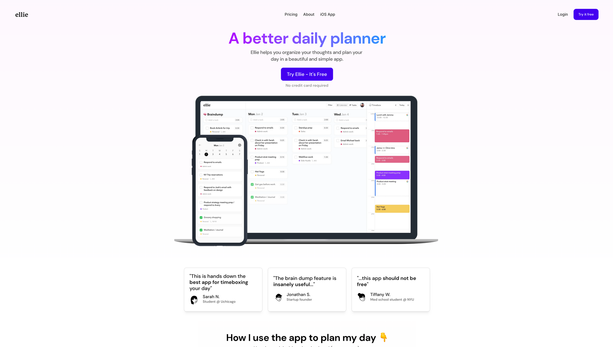 Ellie is a beautifully designed daily planner, which aims to help you organise your thoughts and plan your day in one, simple app.