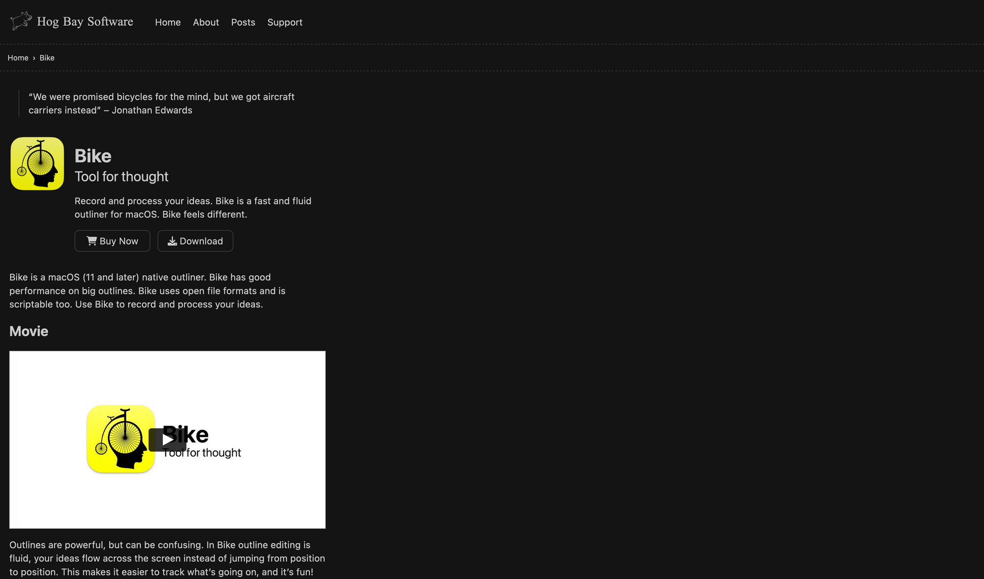 The space around Tools for thought is crowded. Over the course of the last two to three years, loads of folks started to work on new apps to build second brains and knowledge bases. While most of nowadays PKM and TfT apps are complex and have a dedicated learning curve, Bike is a fast, fluid, and simple outliner for macOS.