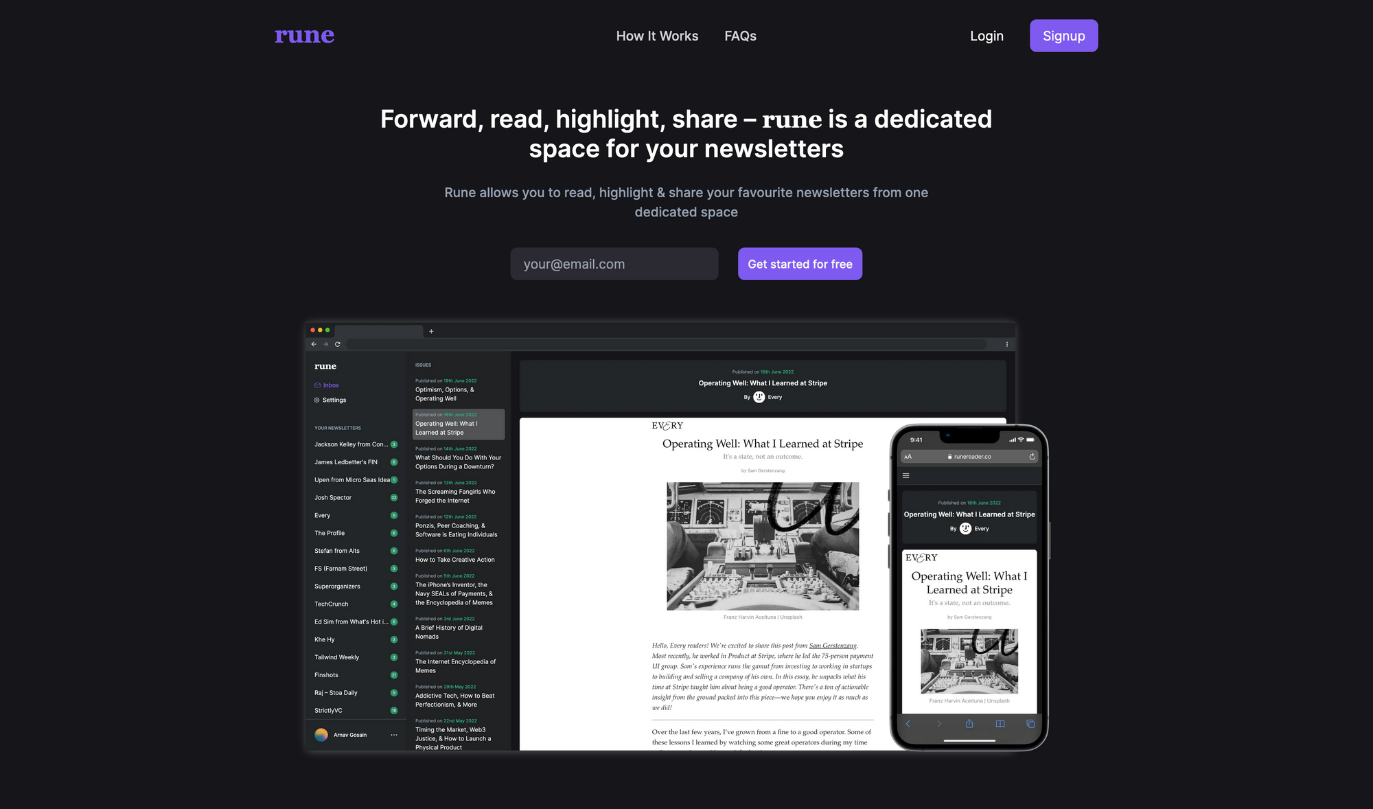 Newsletters are still one of the most popular informational mediums out there. Personally, I not only love writing this newsletter, but I also consume quite a lot of content from other fellow newsletter writers. Rune is a tool for folks who want to keep all their newsletter subscriptions in one place. If you want to create a dedicated space for the newsletters you are subscribed to, make sure to check out rune.