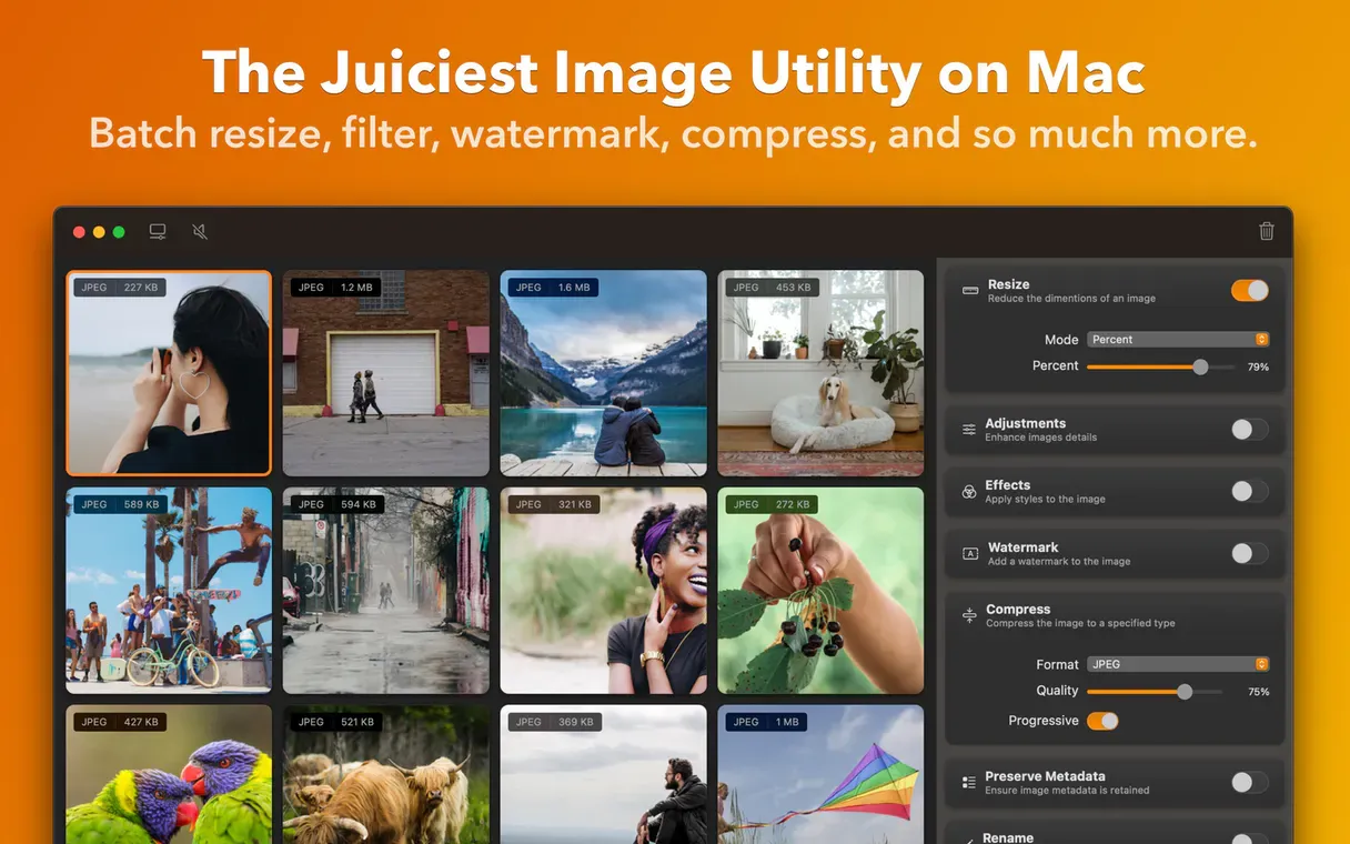 It worked like magic, Squash compressed images without losing image quality. Incredibly useful and powerful. Recently, Squash 3 got introduced, and version 3 turned Squash into an image-editing powerhouse. With Squash 3 you will be able to batch resize, convert, and compress photos, and all of that happens lightning-fast since Squash 3 is a native, universal app built using the latest Apple technologies. Squash is simply beautifully designed with a canvas for your images and a sidebar with all the powerful features built into Squash. Batch conversion has never been that easy. Drop-in as many images and photos as you like and let Squash compress them into the format of your choice. Simple as that, no hassle, safe time.